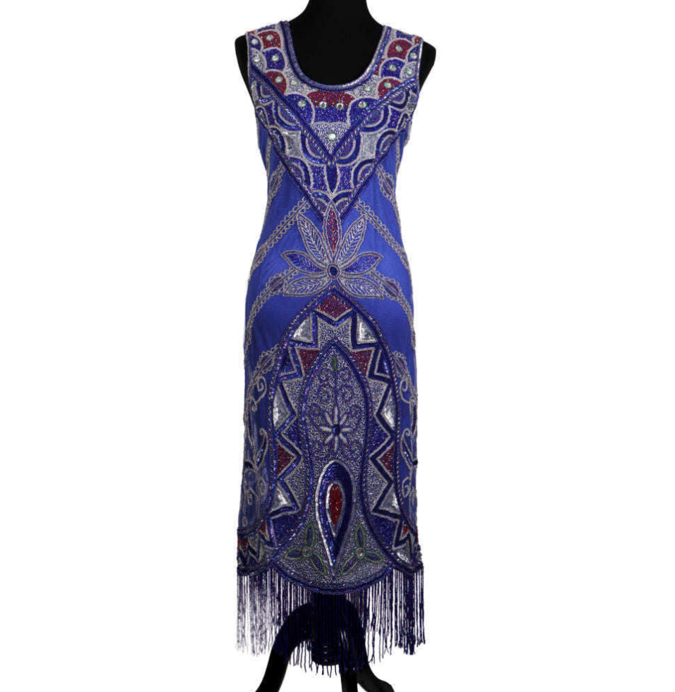 Step back in time to the roaring 20s with our 1920s Women Blue and Silver Beaded Flapper Dress Adult Costume. Perfect for a Great Gatsby themed party, this costume is available to rent or buy in size XL. Complete your look with additional accessories, available for purchase online or in-store.