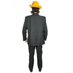 Step back in time to the iconic 1970s with our handmade black gambling suit. The orange playing card print shirt adds a touch of vintage charm. Available in size large, this costume is perfect for themed parties or Halloween. Accessorize to complete your look.