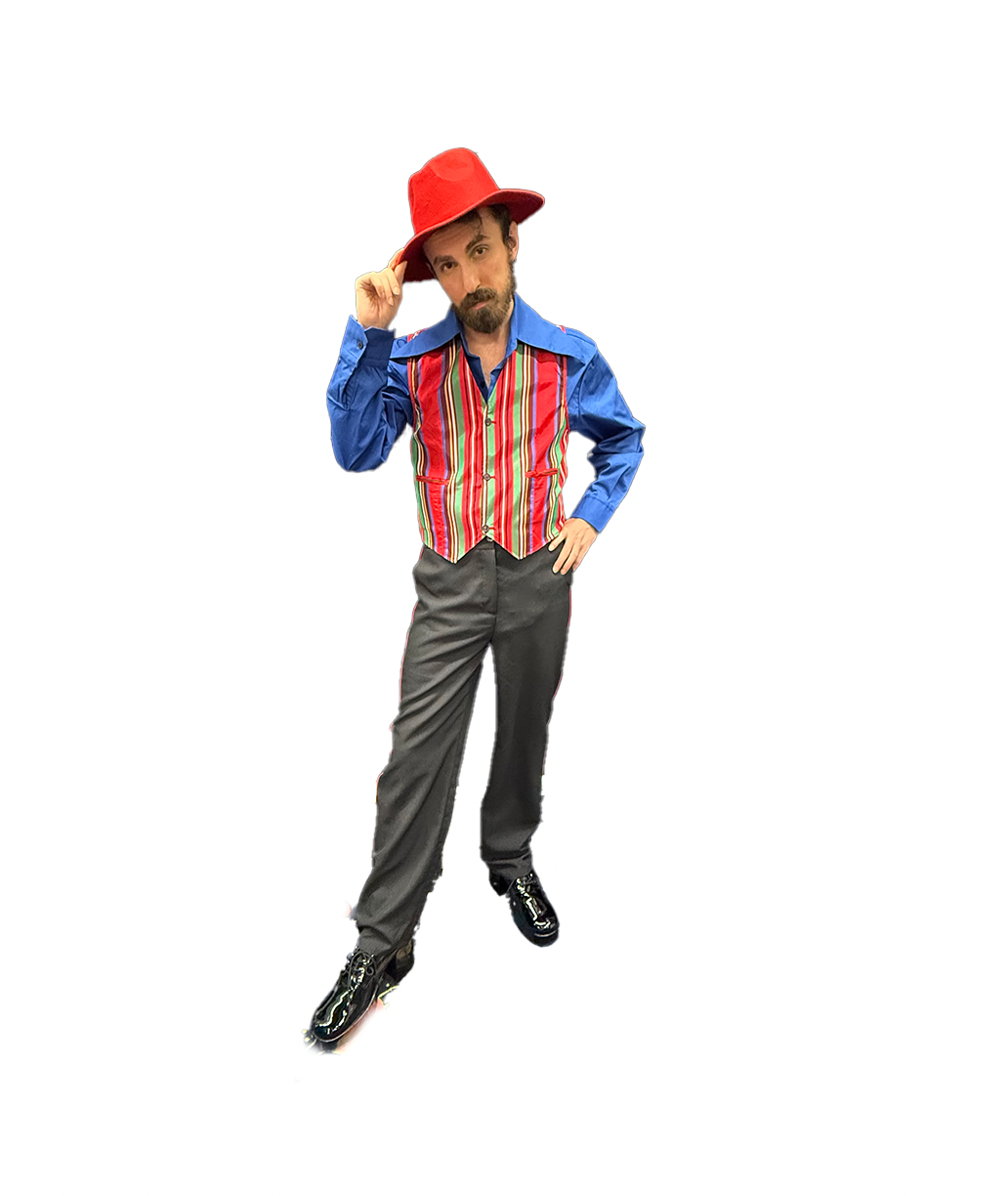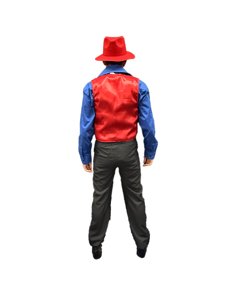 Indulge in nostalgia with our 1970s Blue Party Set Men's Adult Costume. Handmade with attention to detail, this set includes a blue shirt, black bellbottom pants, and a red striped vest. Available in sizes small and medium, complete the look with our optional accessories.