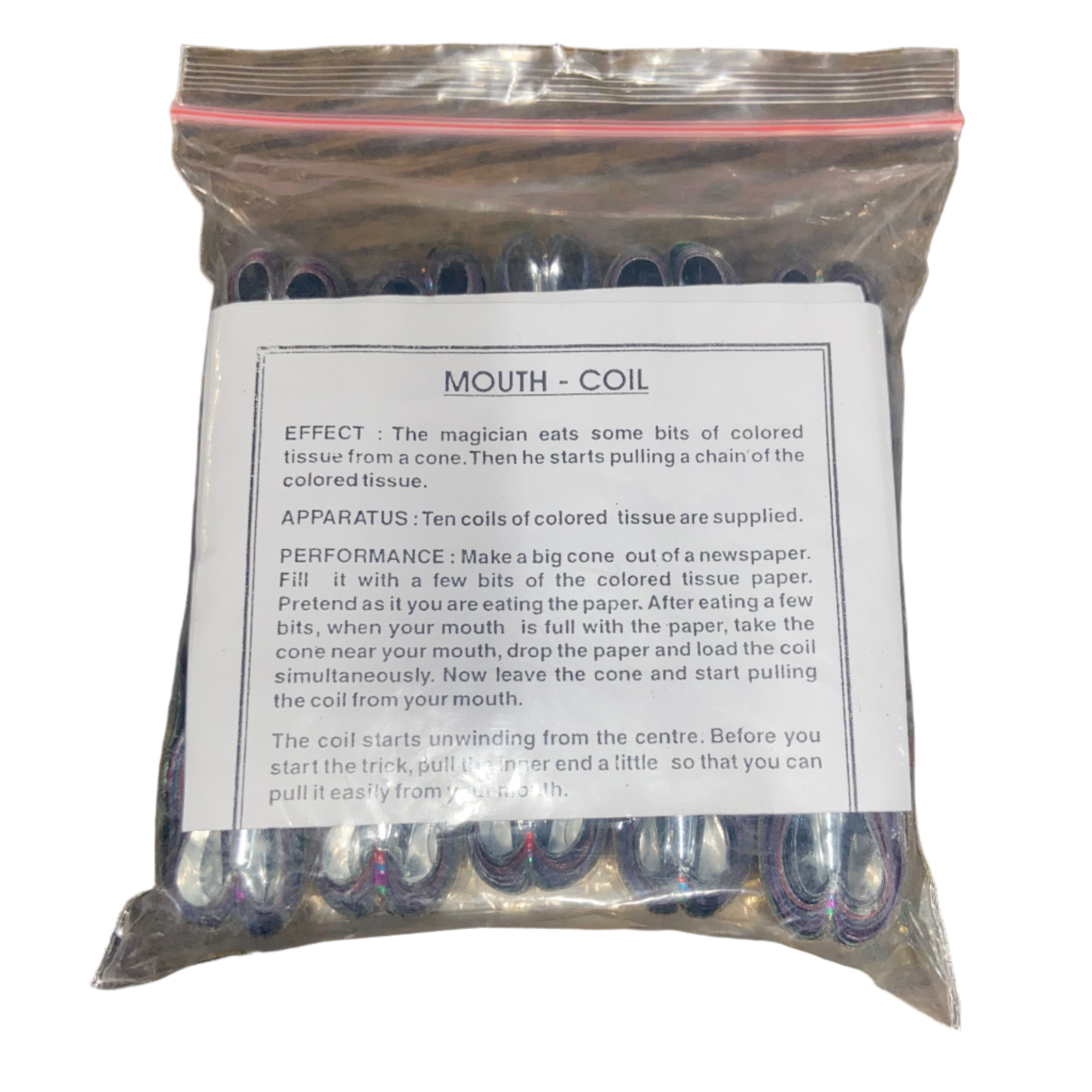 The magician eats a few bits of colored tissue. He then pulls out a 25-foot long chain of colored tissue from his mouth! These mylar coils look great even from a distance.