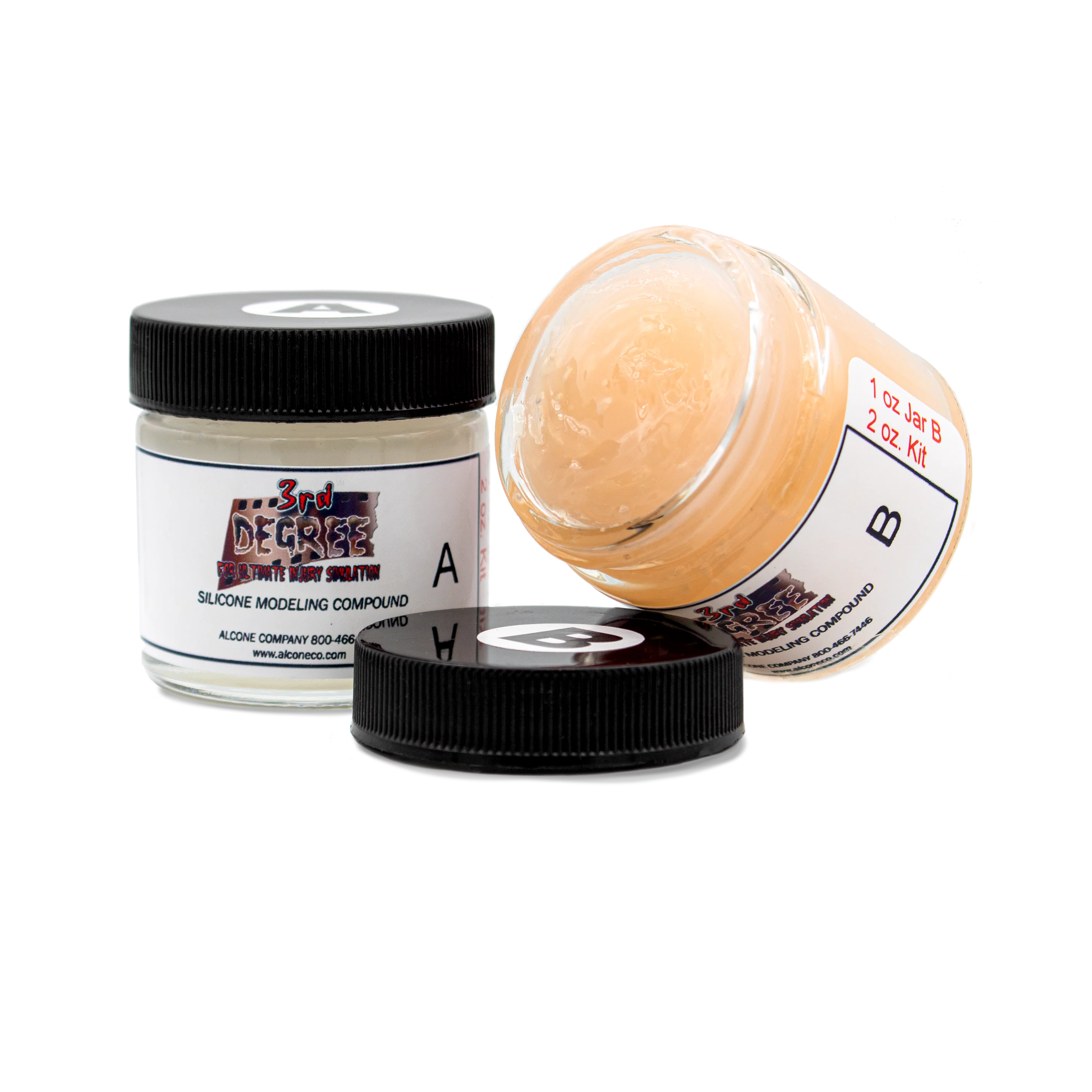 Alcone's 3rd Degree Silicone Modeling Compound is easy to use, easy to remove, and delivers realistic results that blend seamlessly with skin! Simply mix your silicone on a palette, sculpt your effect directly onto the skin, and let it cure! The clear formula takes on the intrinsic color of skin, but alcohol paint can be mixed in before curing, or painted on after. Amateur and pro artists alike can create any number of skin effects with this product!