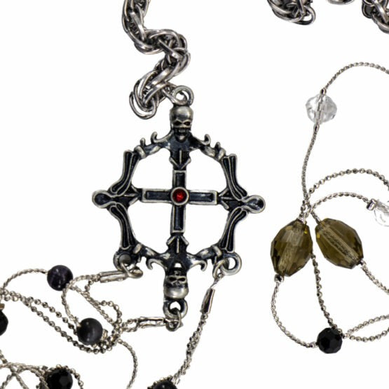 Add an edgy twist to your look with this 6-chain necklace featuring beads and a bold cross charm. Perfect for goth, punk, boho, or pirate-inspired styles, it layers effortlessly to bring a playful yet rebellious vibe to any outfit. Stand out and express your unique spirit with this versatile accessory.