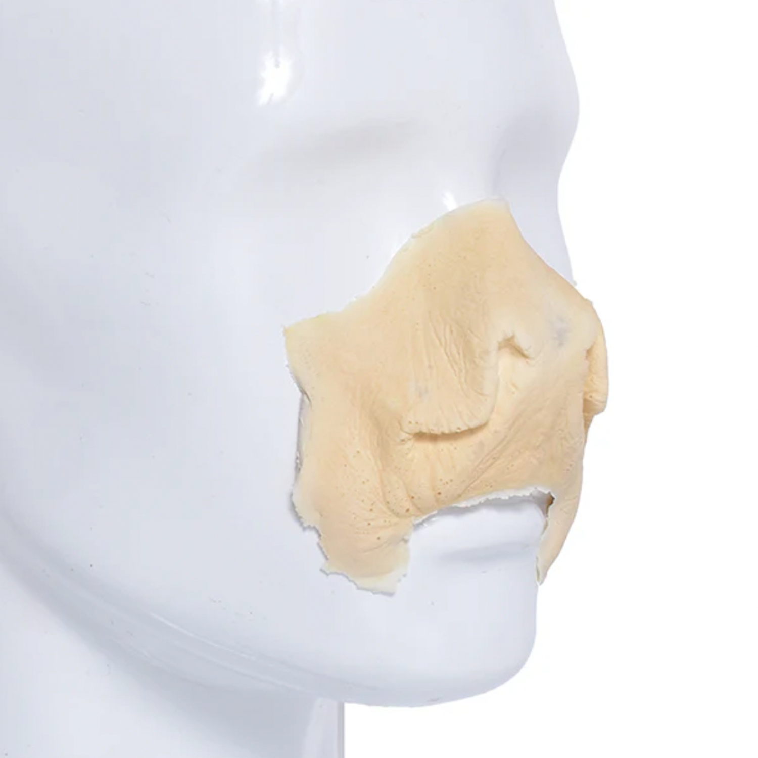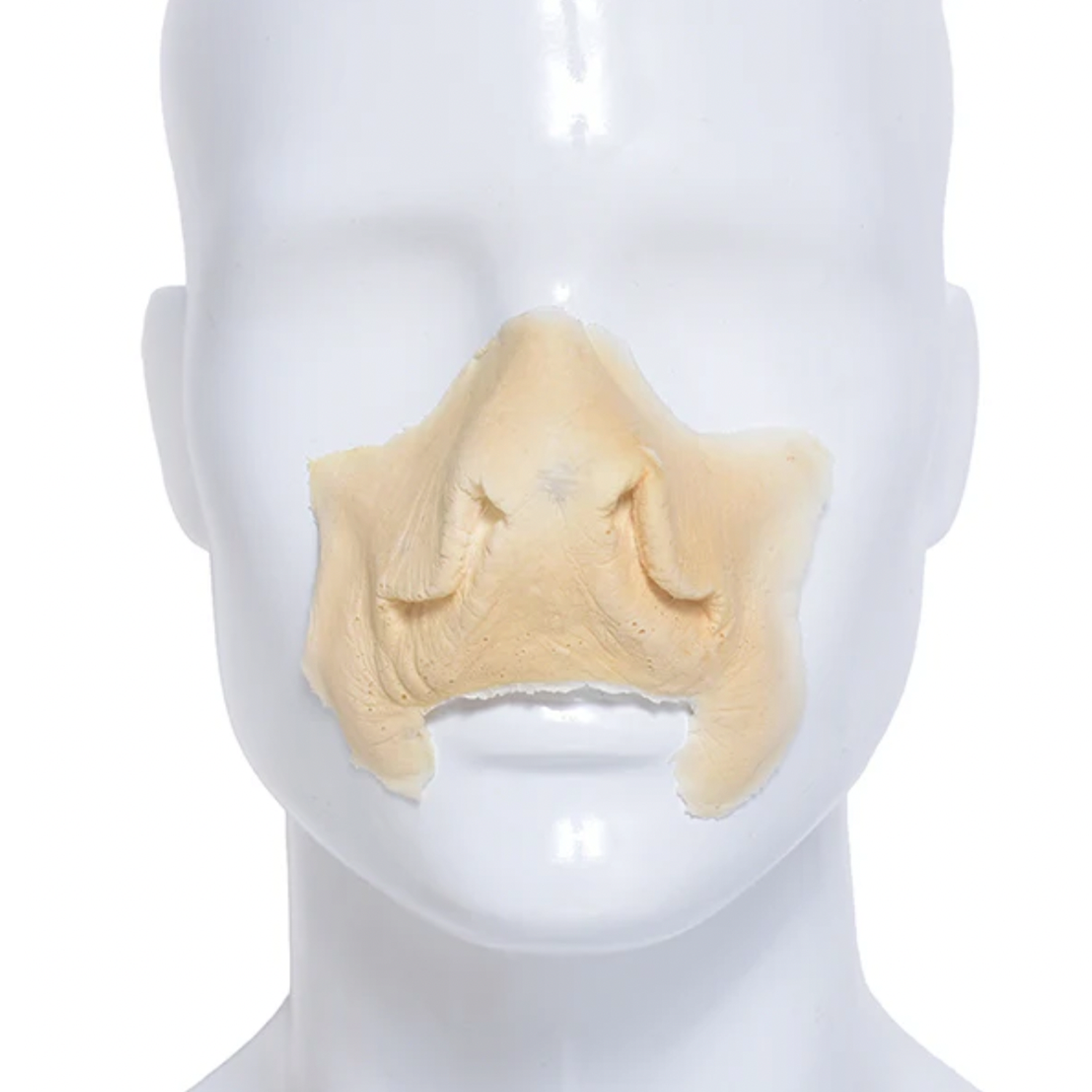 For the best possible results with your Alien Nose #2 Foam Latex Prosthetic, apply skin safe adhesive to the piece up to the edges but NOT on the edge itself, and let the piece dry completely. Using a cotton swab or makeup sponge, apply adhesive to the skin, making sure the adhesive covers a larger surface area than the prosthetic will. Let dry.