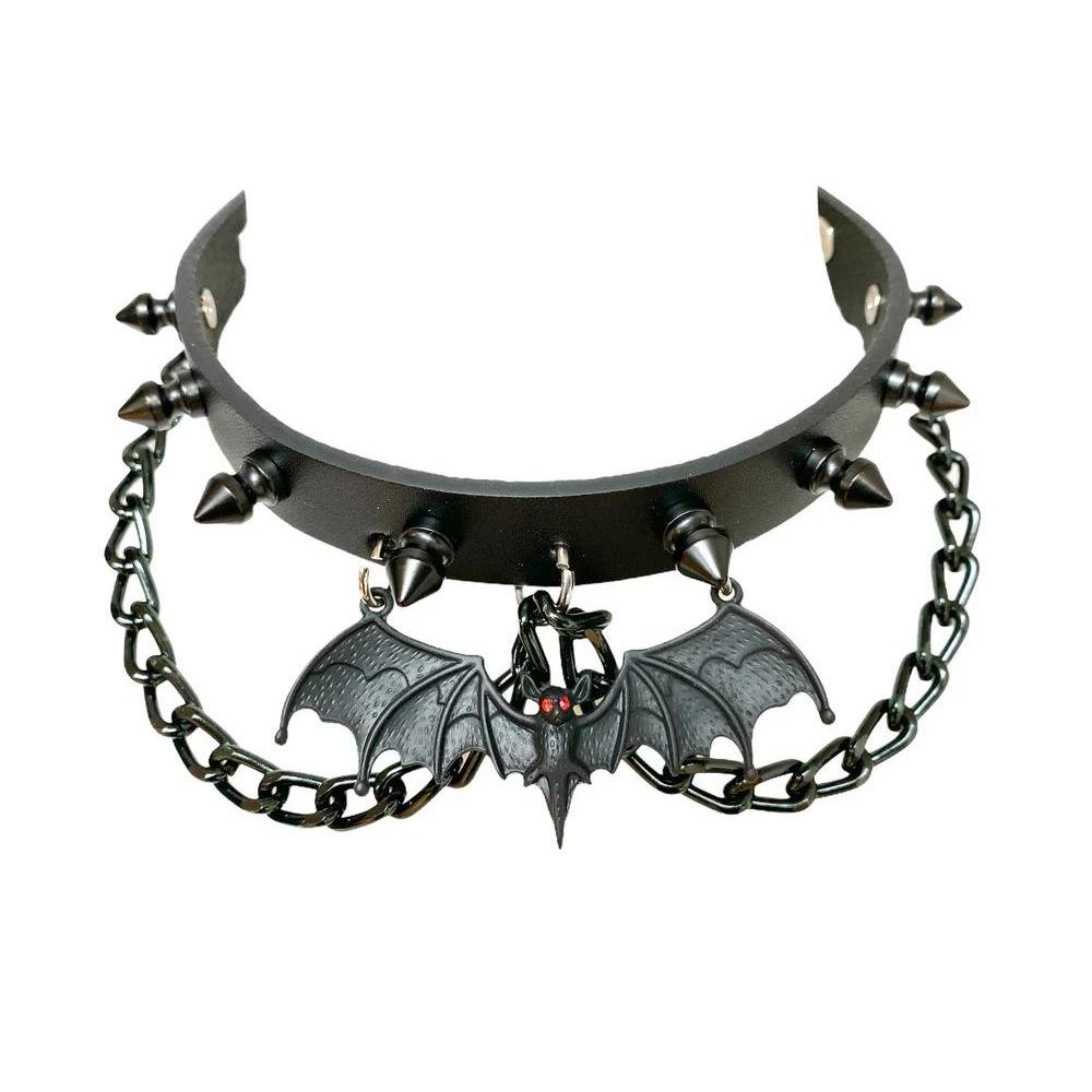 Add some bite to your style with our Bat Choker! Featuring a decorative bat accessory and your choice of silver or black spikes, this is the perfect goth or vampire accessory. Unleash your inner creature of the night and stand out from the crowd.