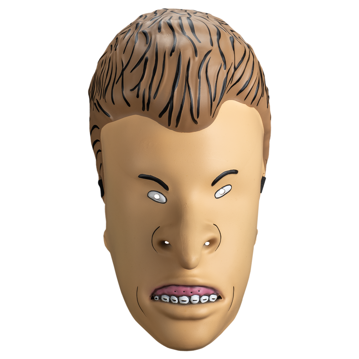 Uh huh huh... Halloween rules. Get ready to score this Halloween with this officially licensed Deluxe Butt-Head Mask! Featuring a three-way strap for a secure fit, this oversized plastic mask is even cooler paired with Beavis. Buy it, fartknocker.