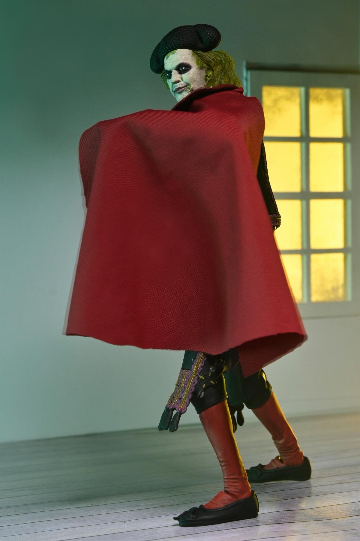 NECA brings the chaos of the iconic scene to life with highly detailed Beetlejuice and Sandworm figures in 7-inch scale. Standing over 12 inches tall, the Sandworm is mounted on a church floor base and features articulated jaws, heads, and tongue for dynamic posing. Ultimate Matador Beetlejuice comes with a cloth cape and interchangeable hands and faceplates. This 2-pack comes in window box packaging perfect for display in your NECA Beetlejuice collection!