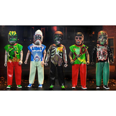 The Ben Cooper Costume Kids Collection - Series 7 features five highly collectible action figures, each showcasing a child dressed as a renowned horror icon. Sold individually, this series offers five distinct options: Jaws, Godzilla, Tarman, The Fly, and Warrior from Planet of the Apes. Crafted with expert attention to detail, these figures are designed for collectors aged 17 and older, providing authentic and nostalgic representations that enhance any horror-themed collection.
