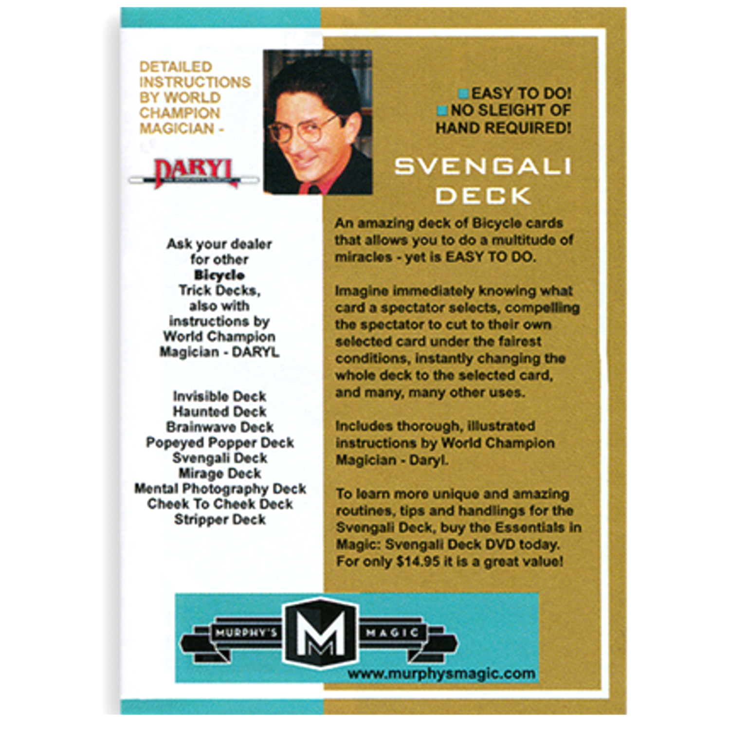 Bicycle Svengali Deck Red (Queen of Hearts) gives you the unprecedented quality, feel and precision of traditional U.S. Playing Card Rider Back Playing Cards -- with one of the MOST commonly chosen cards, the Queen of Hearts.