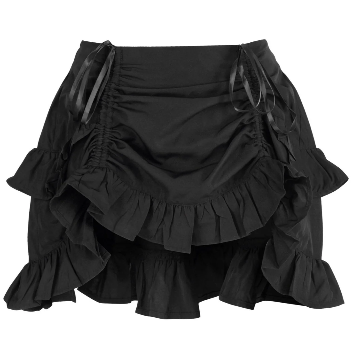Get ready to turn heads with our Black Crepe Ruched Bustle Skirt! This unique piece features an elastic waistband for the perfect fit and adjustable length for a customizable look. Whether you're channeling burlesque or gothic vibes, this skirt is available in sizes Small/Medium, Medium/Large, and Large/X-Large. Stand out with style and comfort in our bustle skirt today!