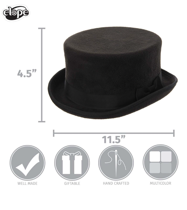 19th Century haberdashery and fashion still live on to this day in the sci-fi genera known as Steampunk. This is a bold take on what the world would look like today and into tomorrow, had the elegant steam engineering of the 19th century prevailed over oil and nuclear power. It’s a rich and creative canvas that many cosplayers tap into to develop their own innovative steampunk costumes. Many choose a Black John Bull Hat like this one over a classic bowler. The hat is made from 100% polyester and molded felt. There is a grosgrain ribbon in the hat band with a tasteful bow on the right-hand side.
