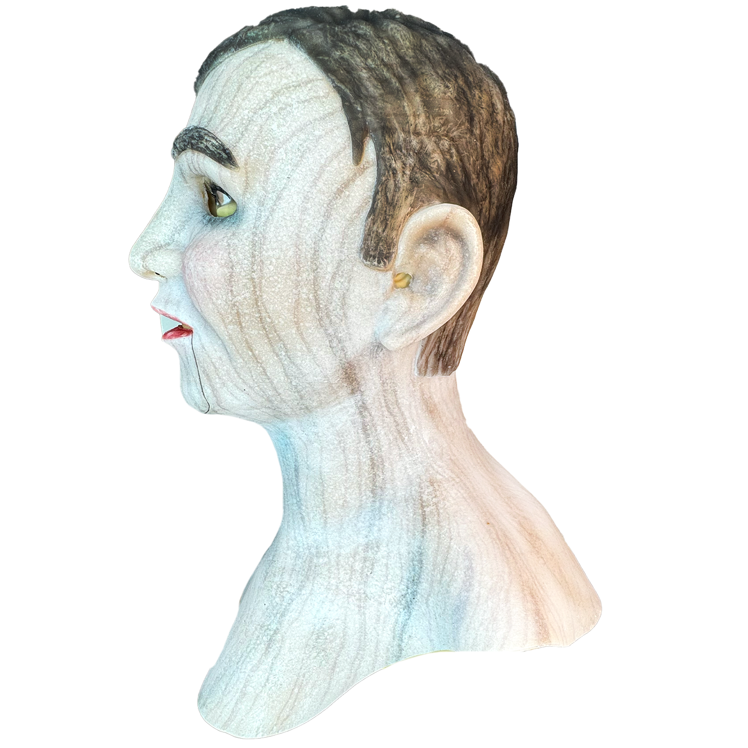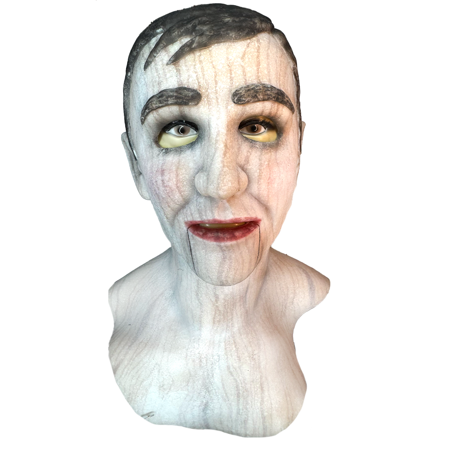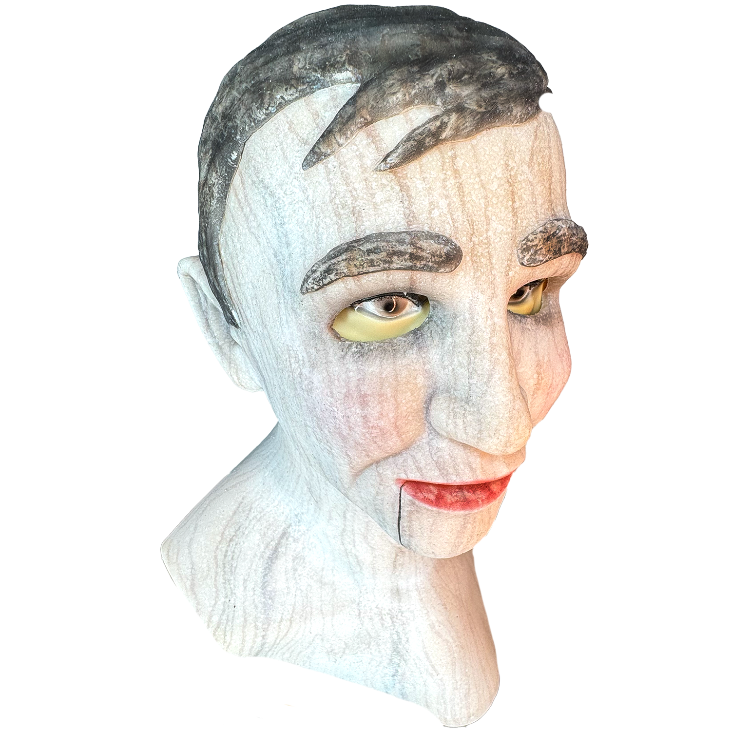 Meet Buddy, the puppet who blurs the line between playtime and nightmare fuel. With sculpted hair, deep laugh lines, and the eerily realistic look of a hinged jaw, this deluxe silicone mask brings an unsettlingly lifelike presence to your collection. Whether he’s the perfect ventriloquist’s dummy or a soulless figure watching in silence, Buddy’s expression is permanently frozen in a knowing smirk—one that might just be laughing at your fear.