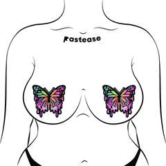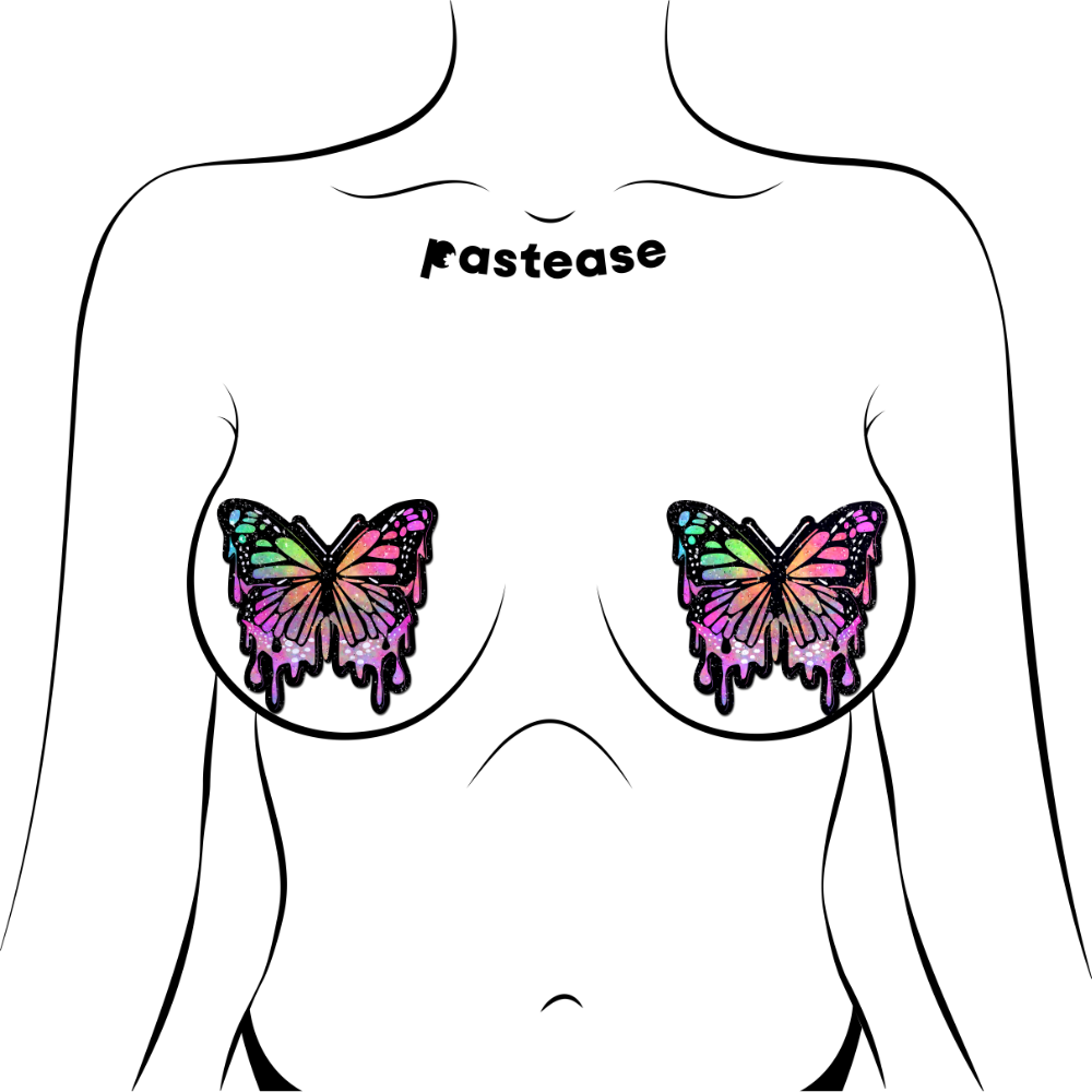 Achieve a vibrant and eye-catching look with these Butterfly Melt Trippy Glitter Rainbow Nipple Pasties! In a fun and unique butterfly pattern, these pasties feature multi-colored rainbow glitter that will make you stand out in each crowd. Make a statement and be the envy of anyone you meet!