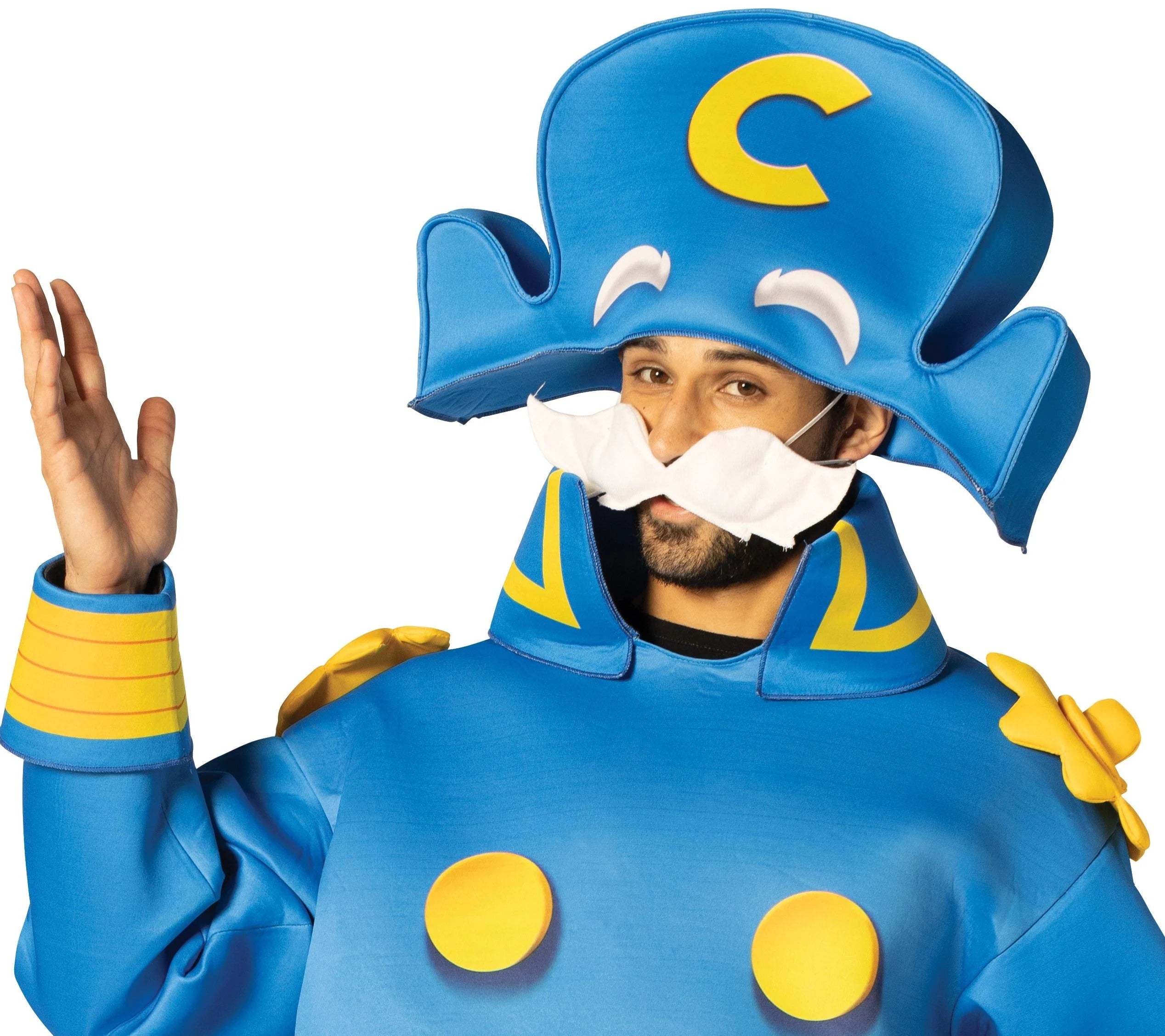 Ahoy, matey! Get ready to set sail for a crunchy adventure in this Cap'n Crunch Character Costume! Whether you're navigating the seven seas or just heading to a Halloween party, this costume will have you looking like the cereal-slinging legend known as none other than Cap'n Horatio Crunch. This costume includes a foam jacket, pants, foam hat and a foam moustache all with printed and 3D details!
