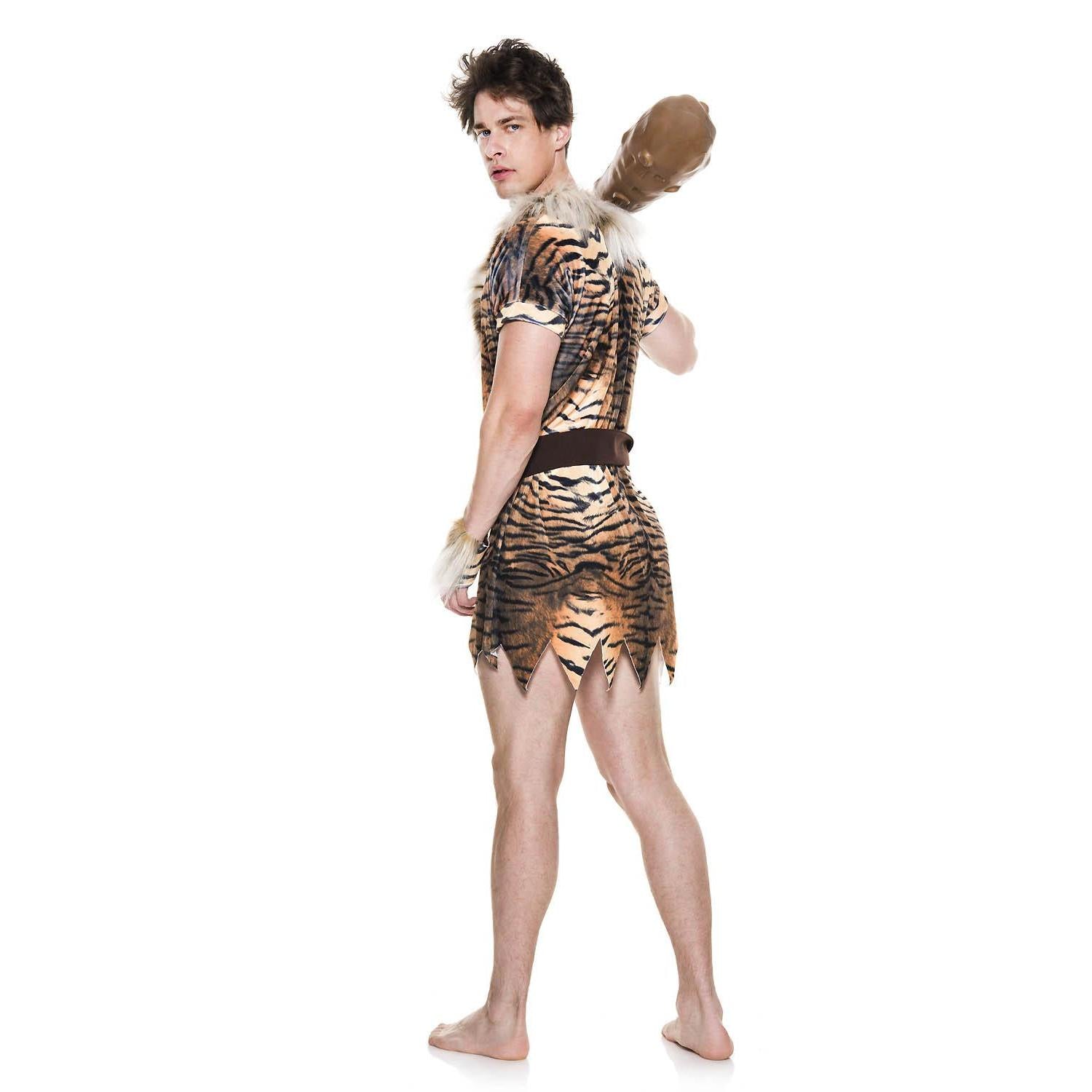 Take a walk on the wild side with this Cave Man Men's Sexy Costume! Featuring a sexy tiger print tunic with playful faux fur accents, this sexy prehistoric look is perfect for turning heads at any costume party.