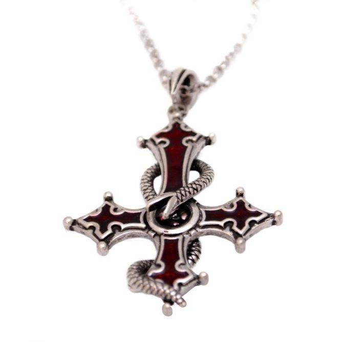 Add a bold twist to your style with this Celtic Cross Necklace featuring a coiled snake and striking blood red detail. Perfect for those who love edgy charm and want to make a statement, this necklace is a unique goth gift that blends ancient symbolism with modern attitude. Wear it to channel mystery and confidence wherever you go!