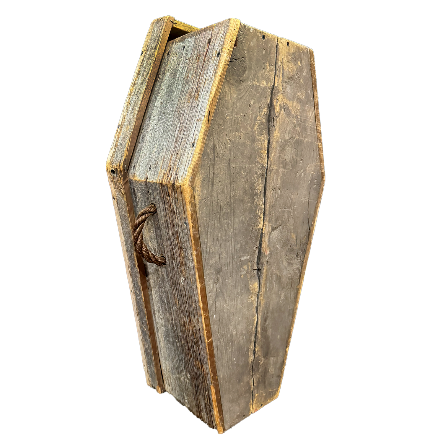Yeah, this might be the most grim prop in our catalogue. This Child Size Coffin Prop features real aged wood, carrying handles and a removable lid. It's quite sturdy, but we still recommend not testing its tensile strength- with a body or otherwise.