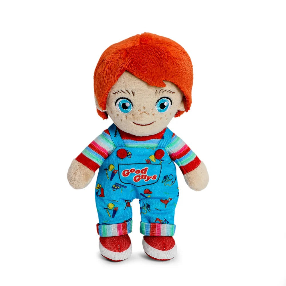 Bring home your favorite killer doll with this Child's Play 2 - Good Guy Chucky Standing Phunny Plush! This licensed collectible horror plush is a soft and adorable version of Chucky, perfect for any fan of the franchise. It's a must-have addition to any horror collection.
