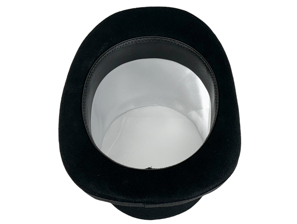 What better way to distinguish yourself as a wealthy knickerbocker than this iconic Classic Black Top Hat? This handcrafted hat features a reinforced brim and top that stands at six inches with a luxurious white satin interior. Perfect for historical and circus themed costumes or for your next gala outing.