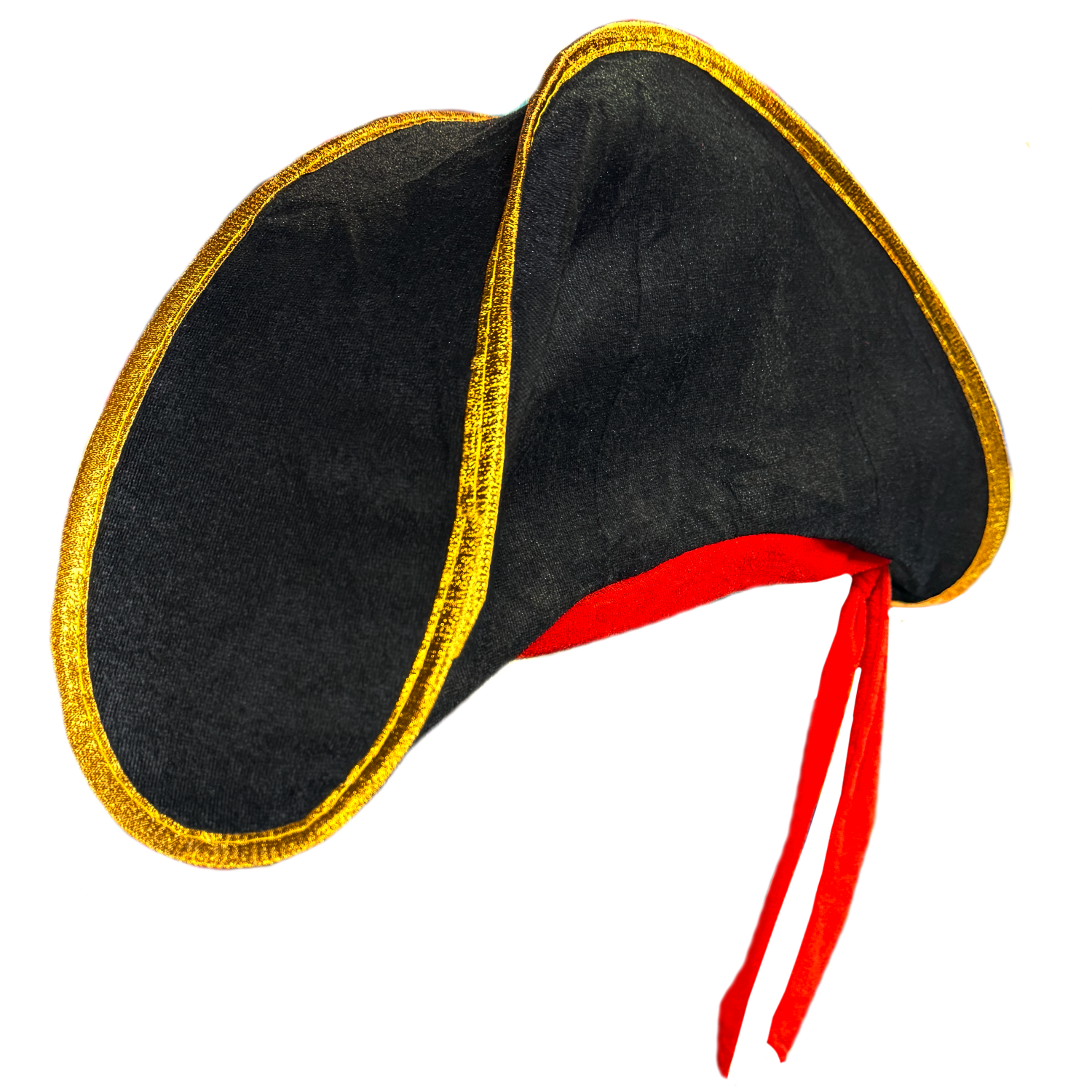 Ahoy, mateys! Sail the seas in style with our Classic Fabric Pirate Hat. This black hat, complete with gold trim and a white skull and cross bones on the front, will make you the most fashionable pirate on the high seas. Get ready to pillage and plunder (and look good while doing it) with this must-have accessory.