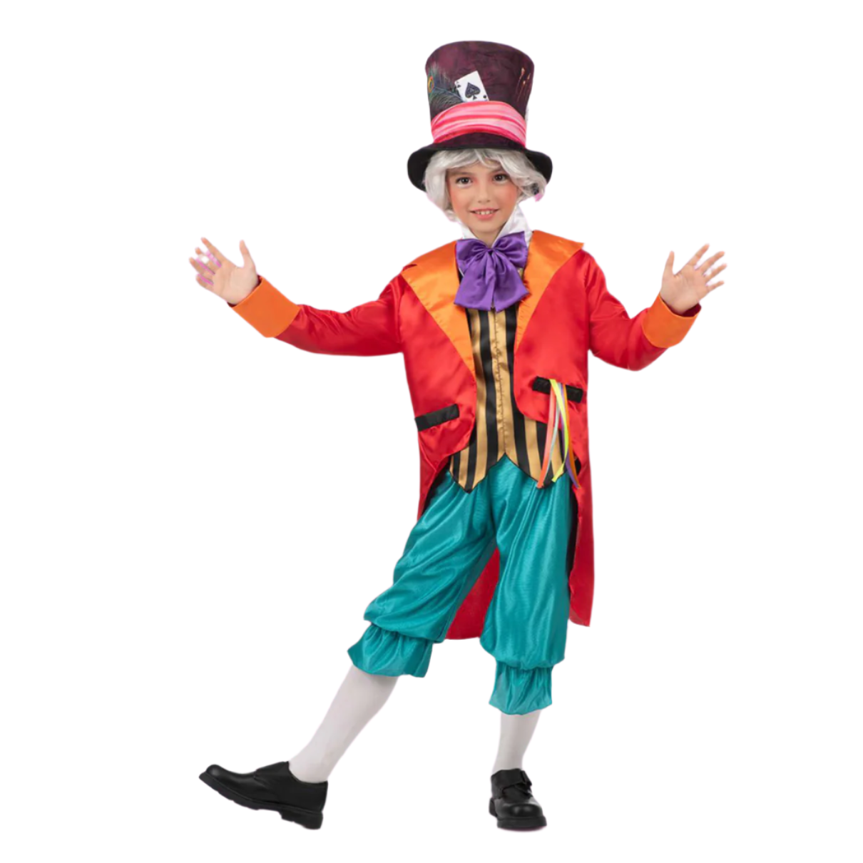 Bring the whimsy of Wonderland to life with this Colorful Mad Hatter Kids Costume. This four piece set brings a vivid twist to the classic character that's sure to inspire compliments when it's time to trick-or-treat!