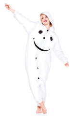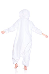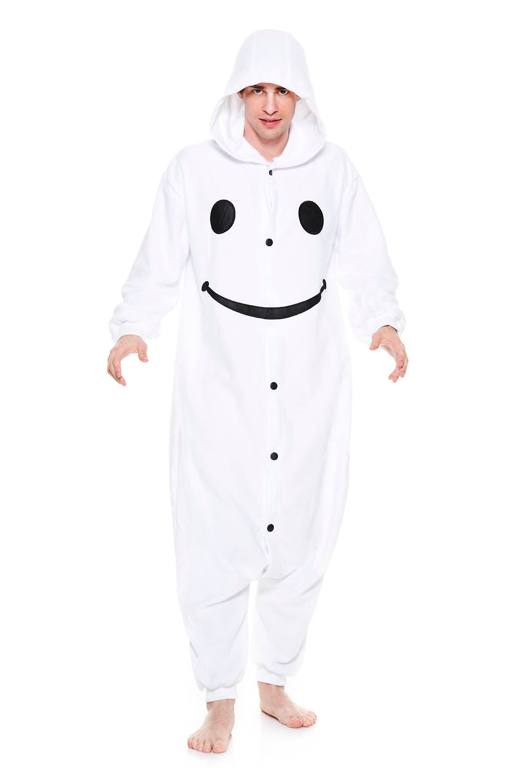 This Cute Ghost Kigurumi Costume is so adorable, it's spooky! This hooded one piece features a ghostly smile print and super soft material that'll have you in high spirits for any Halloween or slumber party.