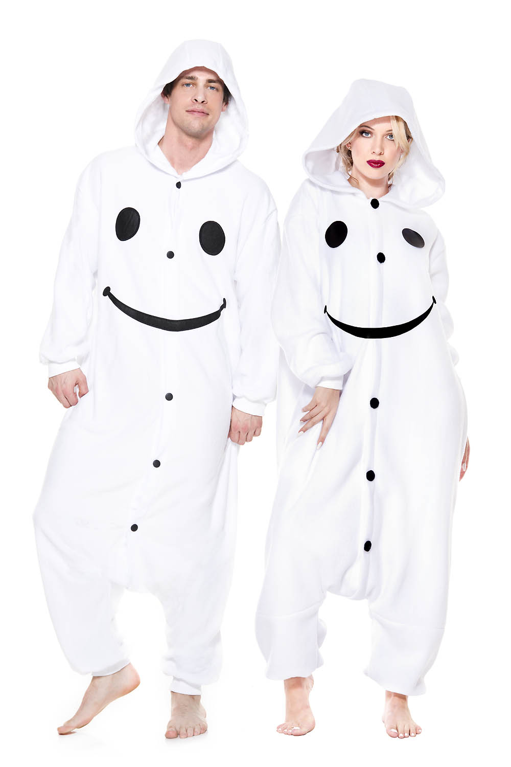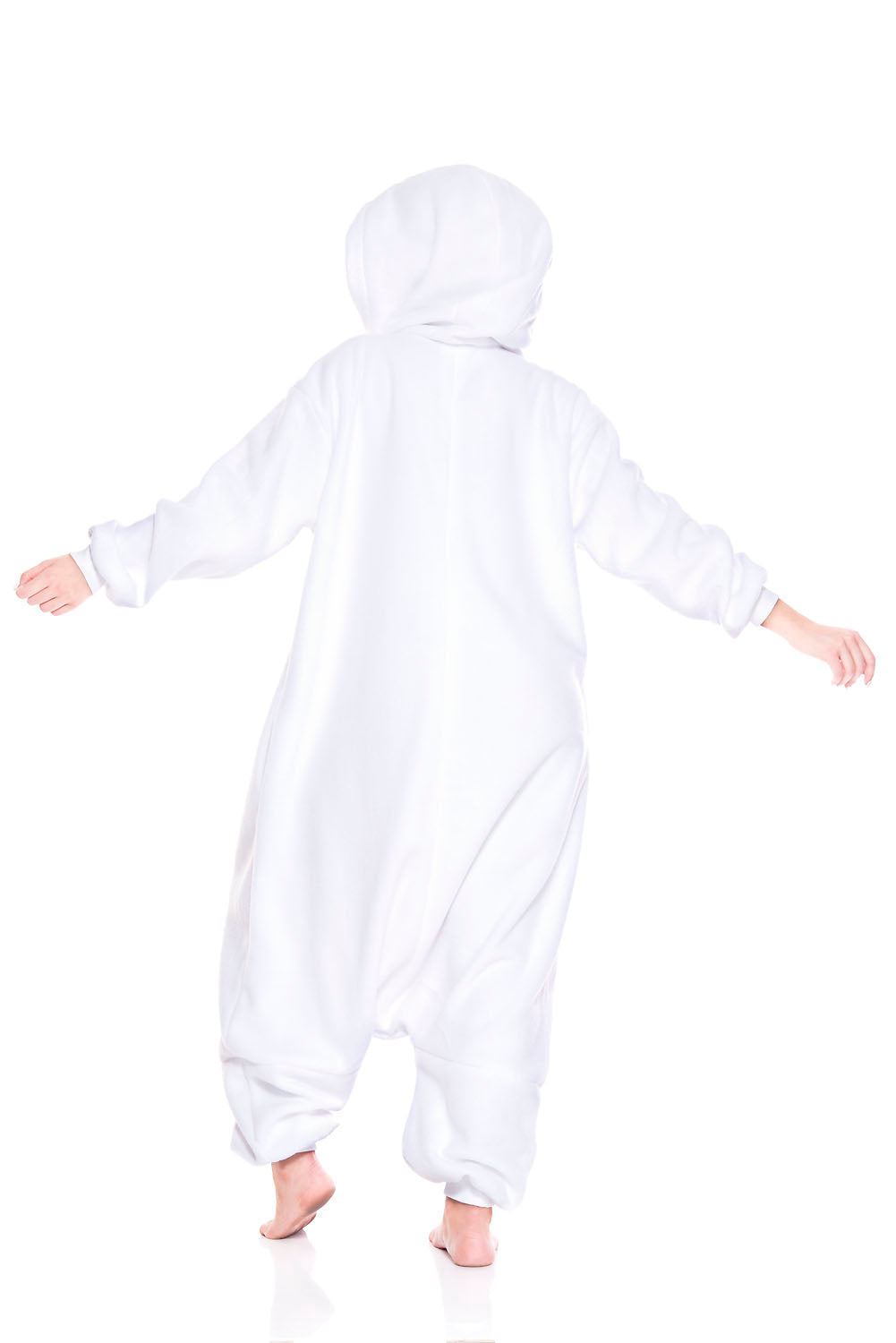 This Cute Ghost Kigurumi Costume is so adorable, it's spooky! This hooded one piece features a ghostly smile print and super soft material that'll have you in high spirits for any Halloween or slumber party.
