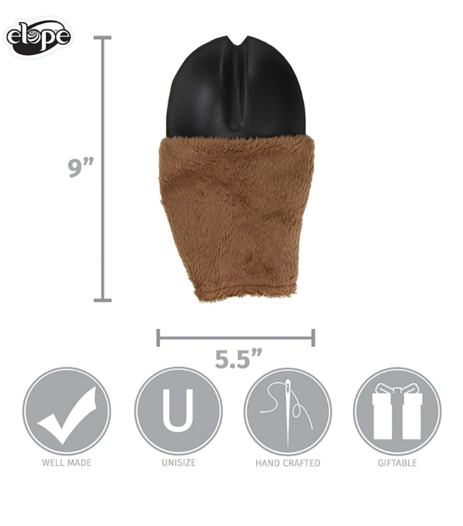 One of the great things about these Deer Costume Front Hooves is that they can be used for a lot of different deer costumes. This includes things like Santa’s reindeer or even Bambi. They are made from 100% polyester and have a comfortable elastic wrist band. The black and brown cloven hooves free your fingers by flipping up the pocket like mittens and have an open thumb hole to let you grasp things. They are one-size-fits-most adult hands.