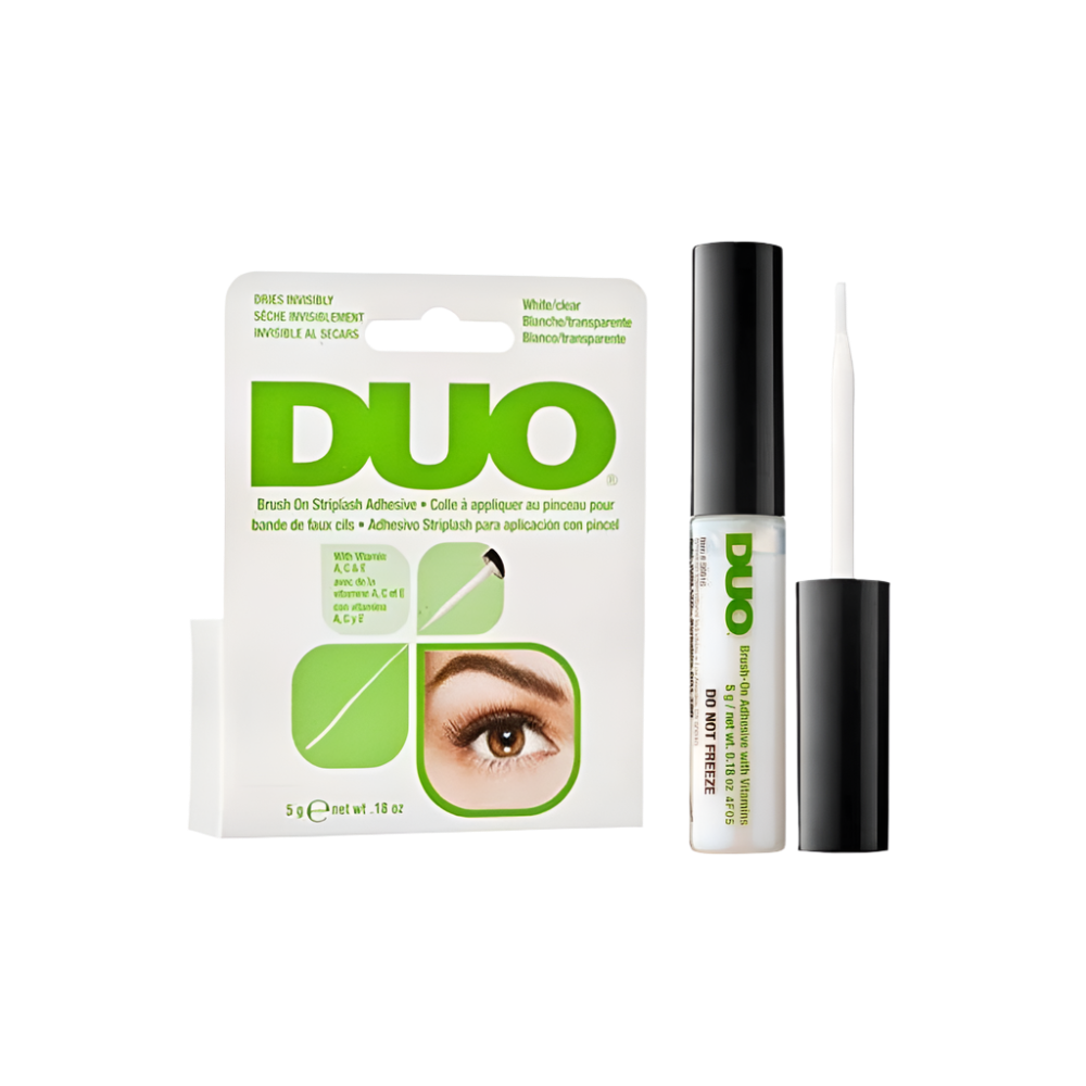 DUO Adhesive - Brush/Clear is a lash glue that provides superior hold, dries clear after application, and can also be used to apply face and body gems. Its brush-on applicator ensures precise application, creating a long-lasting, professional-looking result.