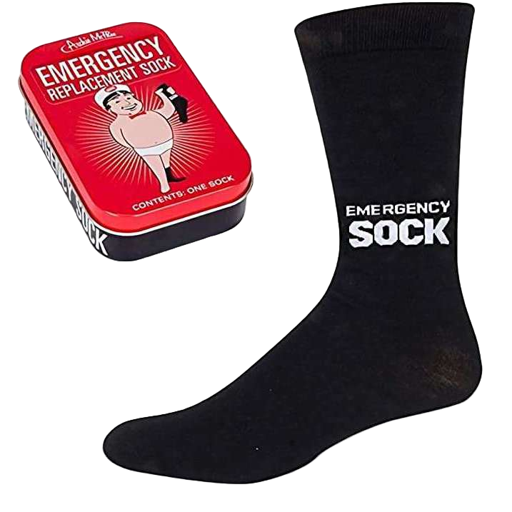Let’s say you step in a puddle and it soaks right through your shoe. Are you just supposed to go all day with a frigid, damp sock on your foot? This Emergency Replacement Sock tin contains one (1) solitary sock that is clearly marked “EMERGENCY SOCK.” Having it clearly labelled is important because it lets everyone around you know not to judge your fashion choice; this is an EMERGENCY!
