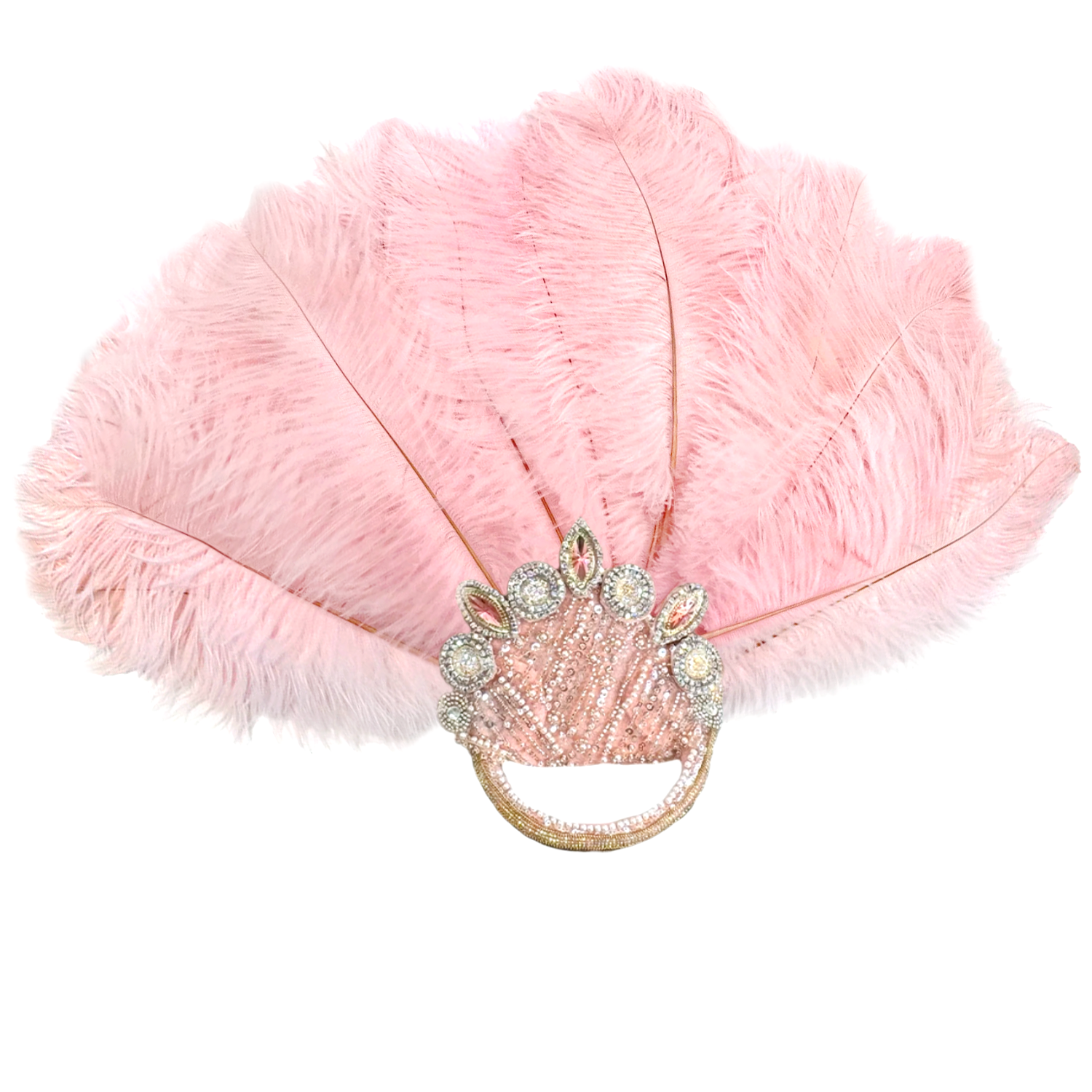 Rule the stage with this Exclusive Burlesque Royalty Pink Fan, meticulously handcrafted by the talented Abraham Poderoso. The long pink feathers and sparkling rhinestone handle embellishments add impeccable flair to any drag performance. Be the showstopper you were meant to be!