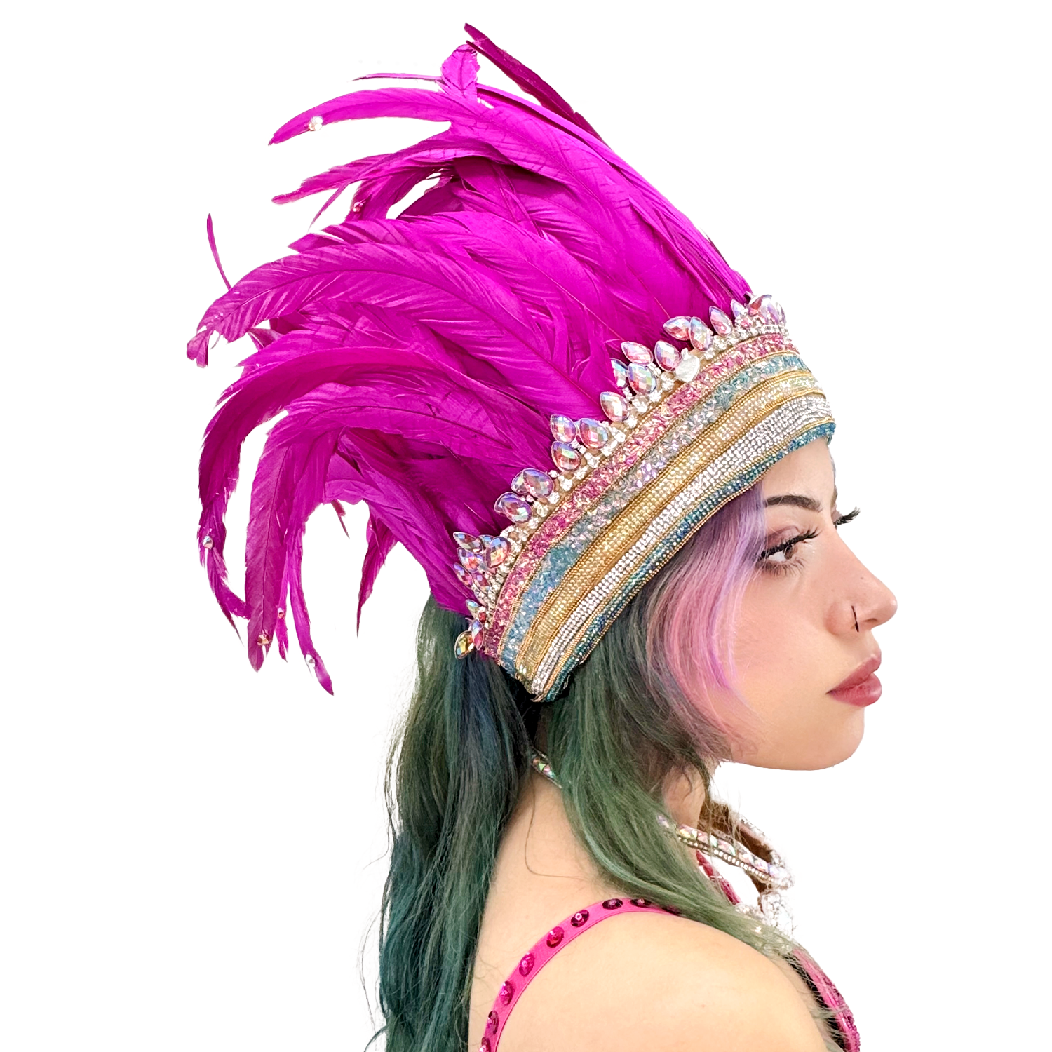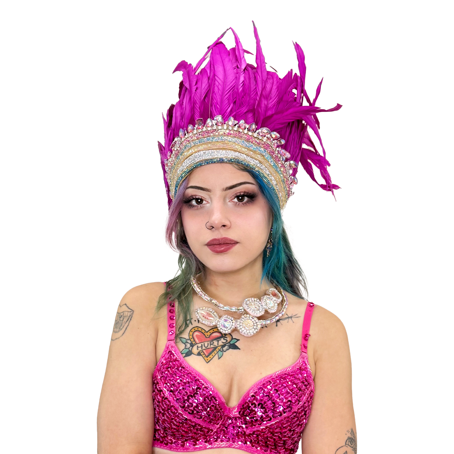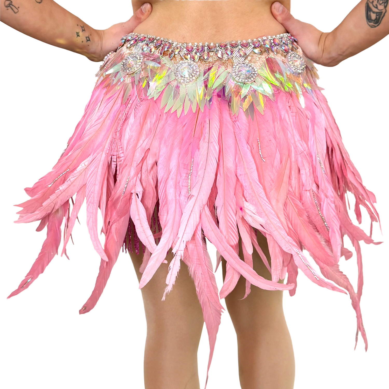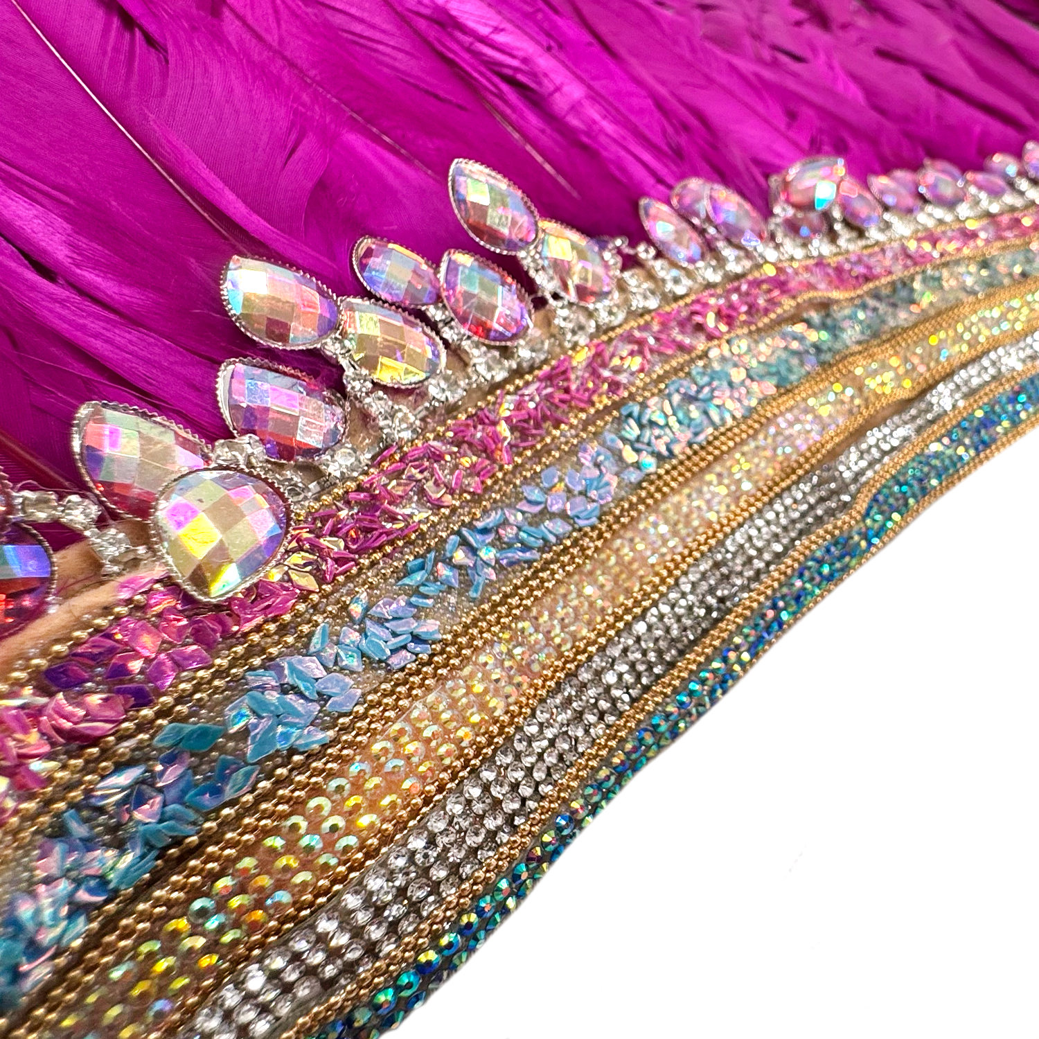 Expertly handcrafted by Abraham Poderoso, these Exclusive Royal Versatile Feather Pieces are a must-have for your drag or burlesque performances. This multi-functional accessory can be worn as a skirt, headpiece, shoulder piece, or neckpiece, offering endless possibilities for your unique style. Available in pink and fuscia, one size fits all. Upgrade your performance with these stunning feather pieces.
