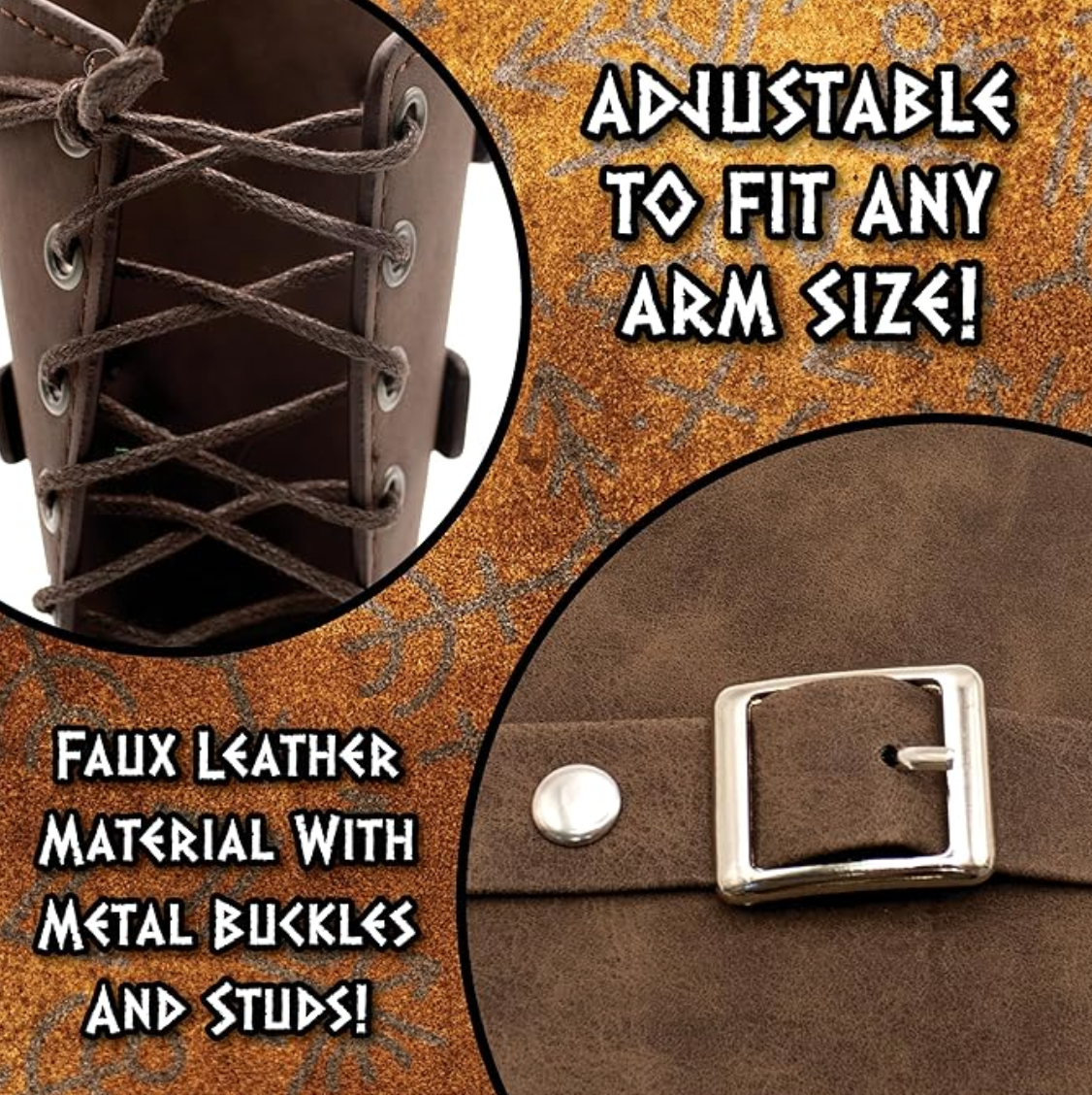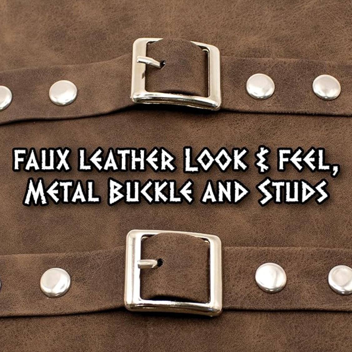 This brown faux leather arm cuff features sturdy metal buckle guards for a secure, stylish fit. Perfect for adding an edgy, polished touch to any outfit.