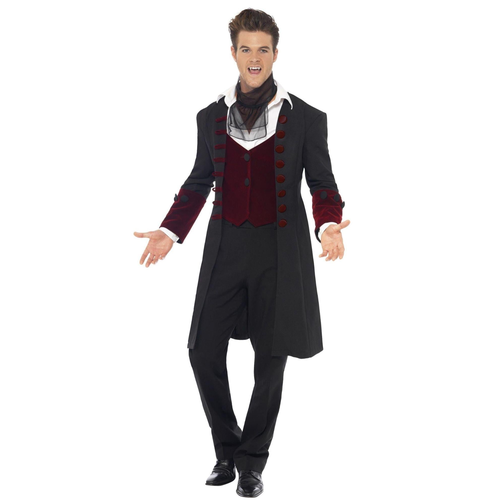 Be the spookiest vampire around with our Classic Drac Gothic Vampire Adult Costume! The classic design with high-quality fabric will have you looking sharp and stylish. This costume is perfect for those who want to let their inner vampire shine – in a fun and fashionable way. Vampire fangs not included.