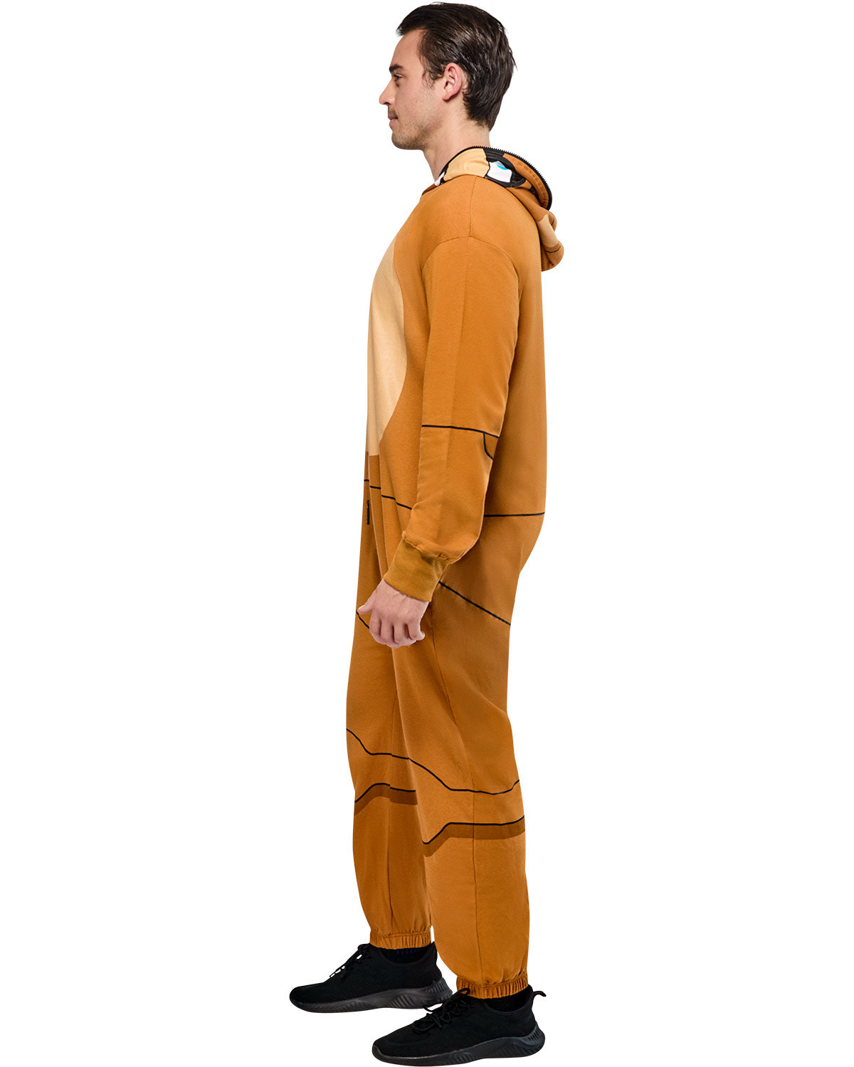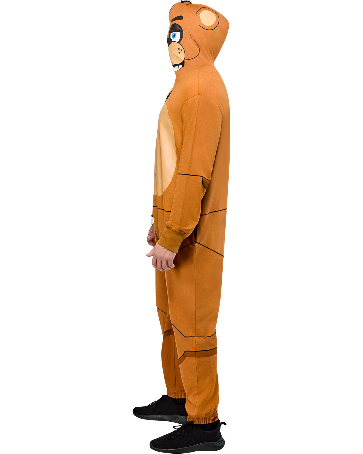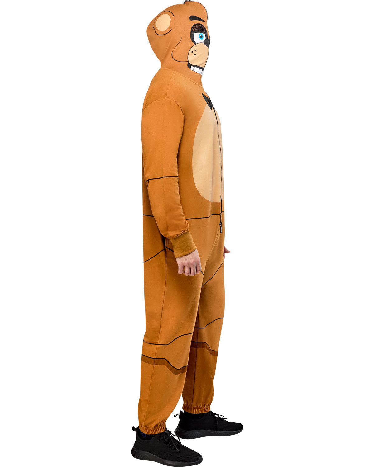 Give your friends a good scare with the Five Nights At Freddy's Adult Freddy Fazbear Comfy Wear Costume. This officially licensed one piece features a print of the infamous animatronic bear and zips all the way up to hood so you can fully immerse yourself in creepy comfort.