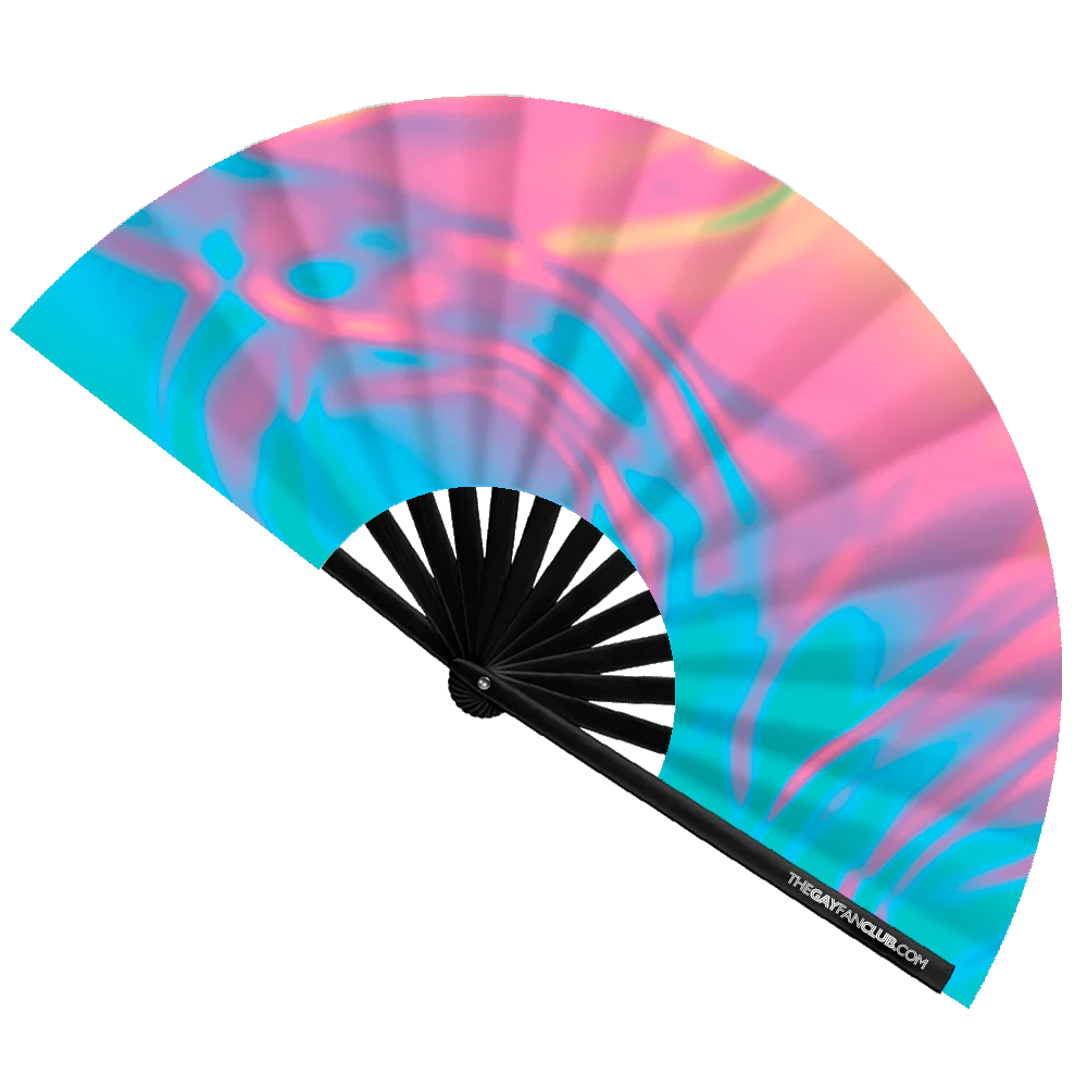 Celebrate your spectrum with this UV reactive Fluid Hand Fan. Engineered to dazzle, the vibrant design pulses with life under blacklight, making it the perfect accessory for circuit parties, night festivals, and late-night sets.