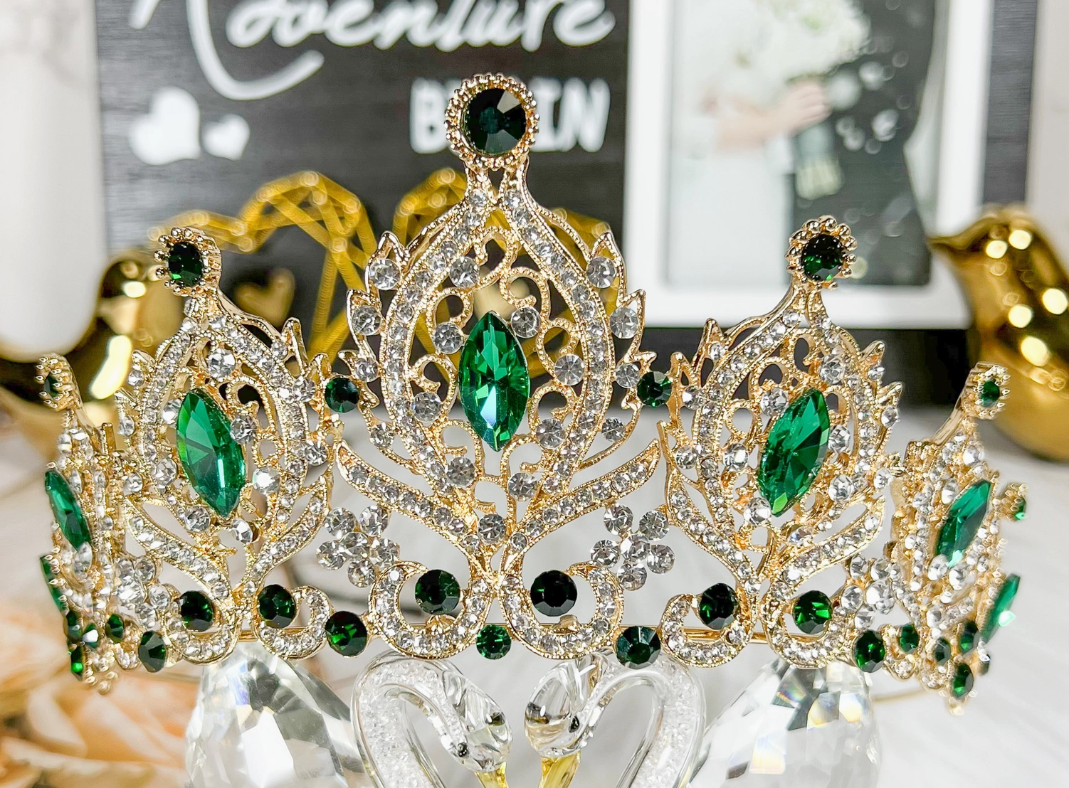 Become the forest goddess you were meant to be with this Green and Gold Tiara! Made with high quality alloy and sparkling rhinestone diamonds, this tiara will elevate your fairy queen costume to new heights. Unleash your inner magic and revel in its enchanting beauty.