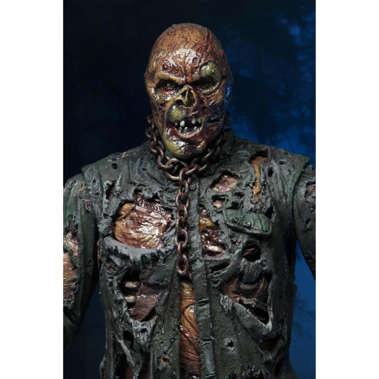 The figure comes packed with accessories worthy of Jason’s murderous resume, including two interchangeable heads (masked and grotesquely unmasked), a removable hockey mask, multiple weapons like a scythe, machete, axe, and even a buzzing weed trimmer—because Jason doesn’t mess around. The blood-soaked details and swampy decay are sculpted with nightmarish precision, making this a must-have piece for horror collectors and slasher fans alike. Comes in collector-friendly window box packaging with an opening flap, ideal for display.