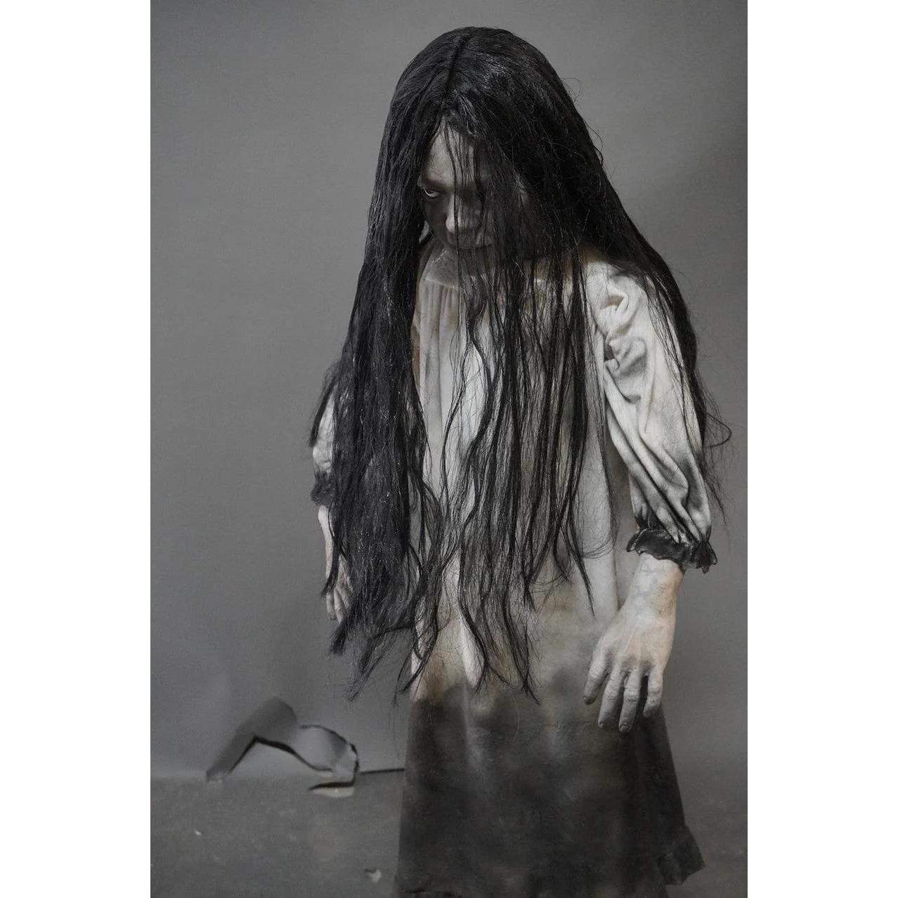 Whatever you do, don't accept her invite to Netflix and chill. This super creepy Ghost Girl Child Posable Prop is life sized and features bendable limbs- perfect for contorting horribly! Great for situating in the corner of your haunted house or Halloween decor display.
