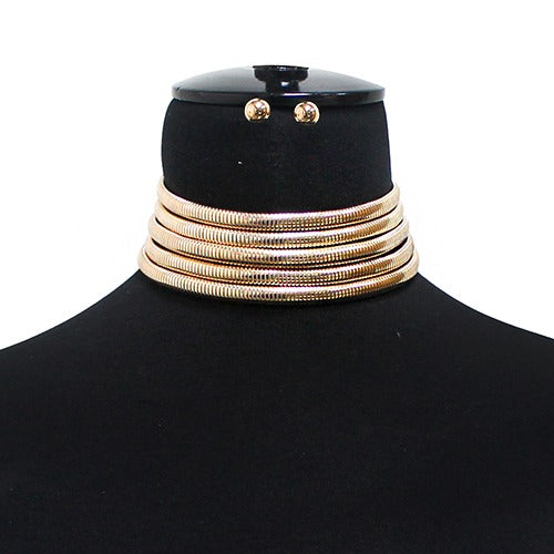 Add a touch of ancient elegance to your look with this Gold Choker Set featuring a sleek Omega chain. Perfect for completing a Cleopatra costume, embodying a Greek goddess, or dazzling at Carnival, this choker brings a playful yet regal vibe to any outfit. Its shimmering gold finish catches the light beautifully, making you the center of attention wherever you go.