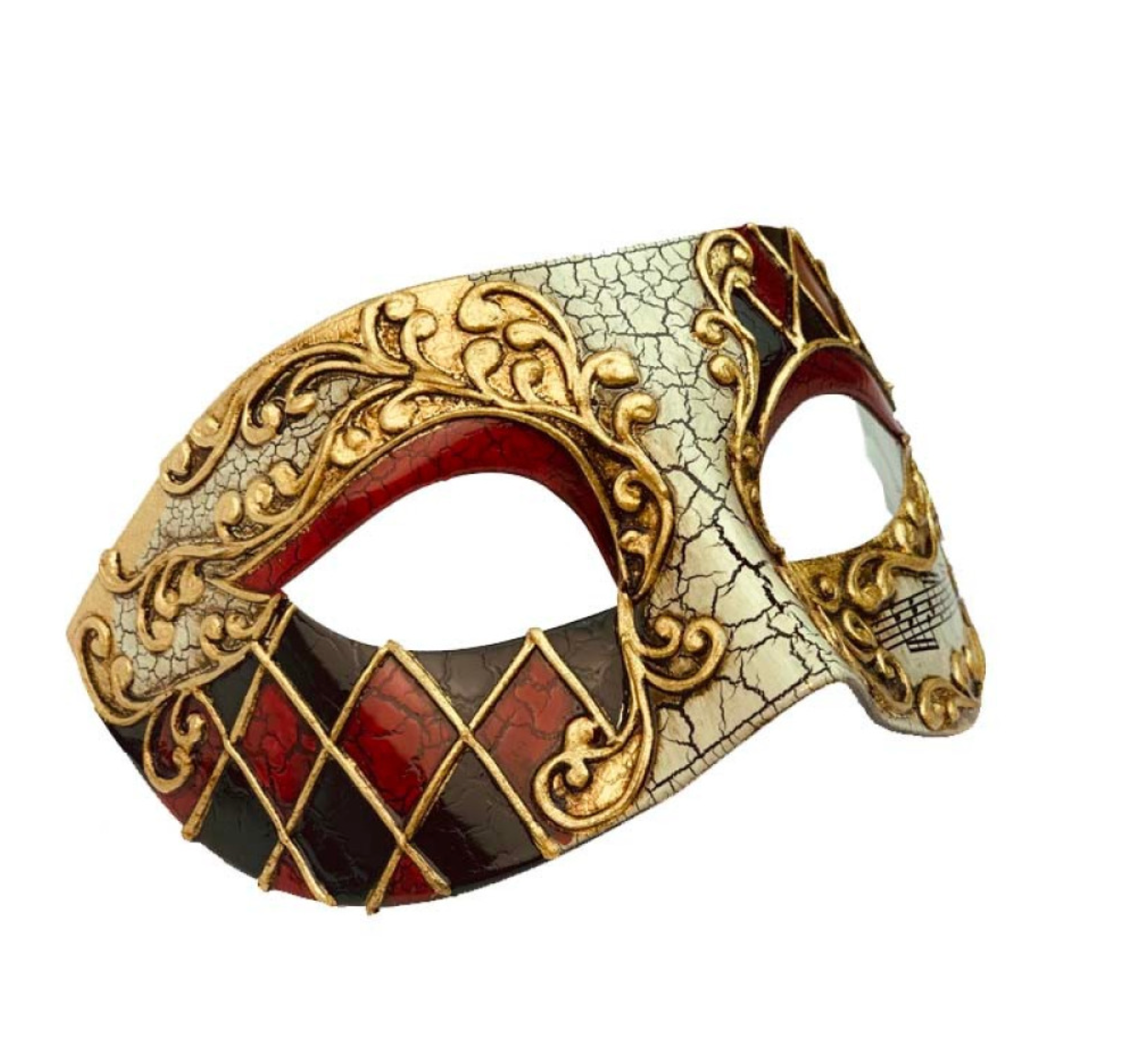 Transform into a mysterious and alluring figure with this Gold, Red, & Black Checkered Venetian Mask that comes in two options! The intricately designed gold, red, and black checkered pattern adds an exotic touch, making this mask perfect for masquerade balls, Halloween parties, or any event where you want to make a striking impression. Unleash your inner seductress and captivate all who see you with our Venetian mask!
