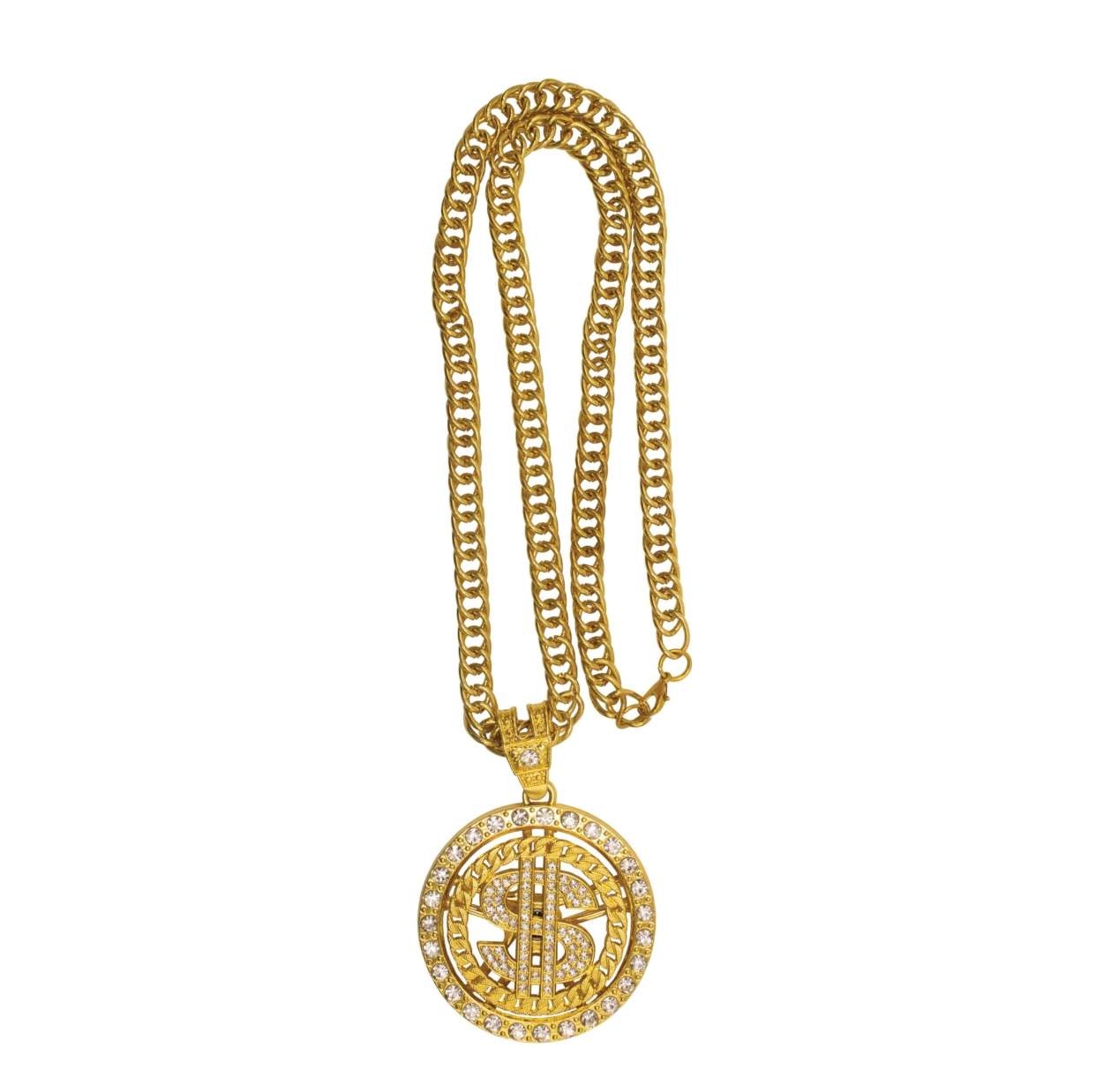 Elevate your costume game with the Spinning Dollar Sign Necklace, a must-have accessory for a standout look. This necklace features a fully rotating dollar sign pendant, perfect for adding a touch of bling to your ensemble.