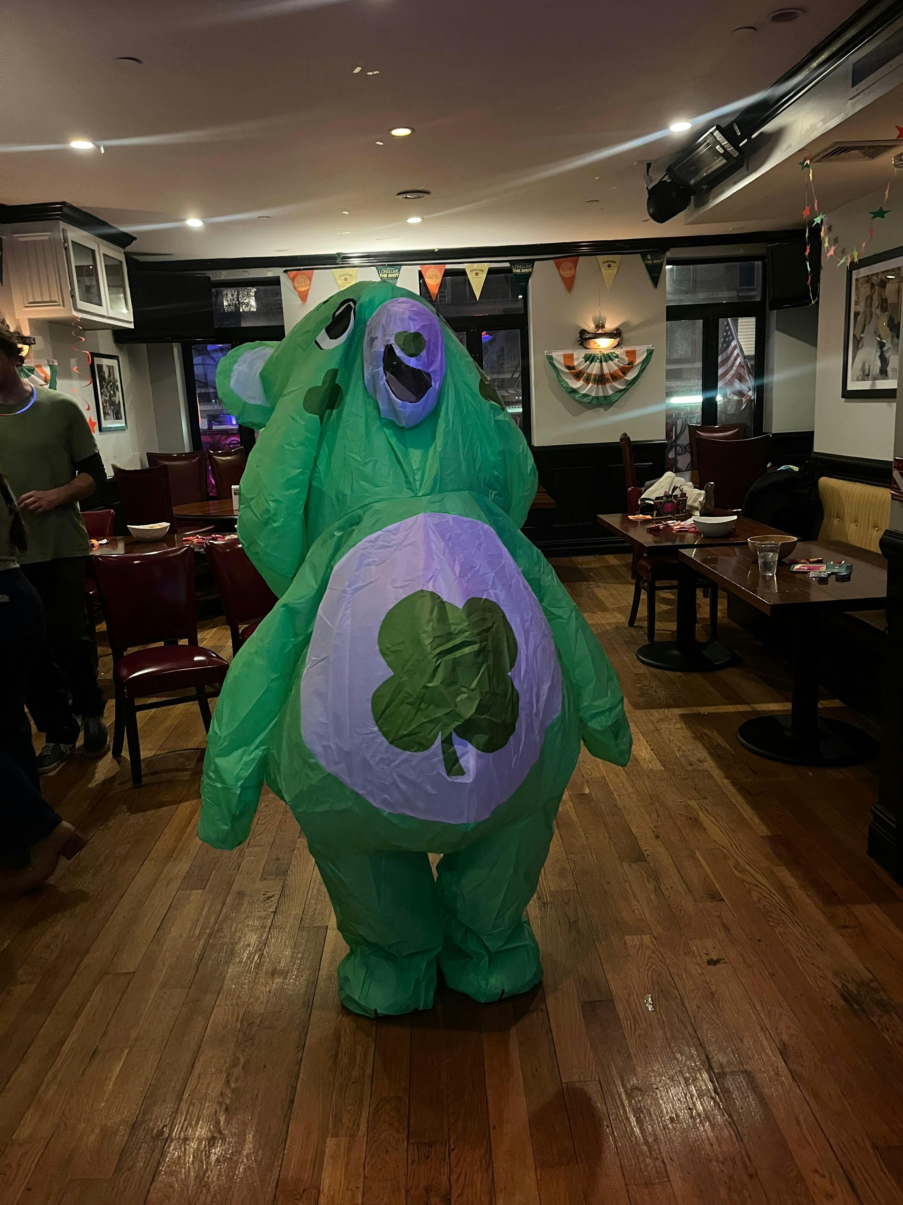 You'll always get lucky with this Good Luck Bear Adult Inflatable Costume! This one-size-fits-most costume will have you looking (and feeling) like an inflatable million bucks. Get ready to wish everyone good luck and "bear-love"!