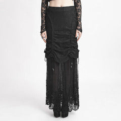 Expertly crafted with high quality materials, this Gothic Lace Maxi Skirt features intricate floral accents and a delicate lace trim. Its two layers add dimension and elegance, making it the perfect choice for any gothic-inspired outfit. Elevate your style with this stunning and unique maxi skirt.