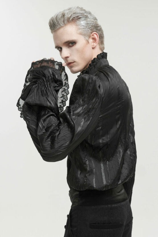 Embrace timeless elegance with this Gothic Pinstripe Ruffled Long Sleeve Shirt, designed to evoke Victorian gothic charm. Featuring delicate ruffles on the collar and sleeves, it adds a refined, dramatic touch to your wardrobe. The subtle pinstripe pattern enhances its vintage appeal while offering a versatile style perfect for both day and evening wear. Elevate your look with this statement piece that blends classic sophistication with modern edge.