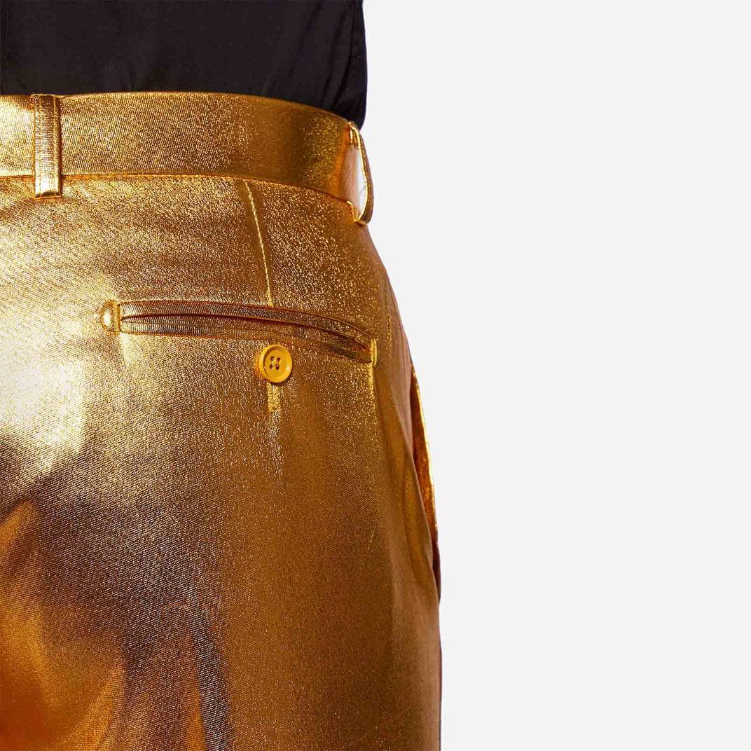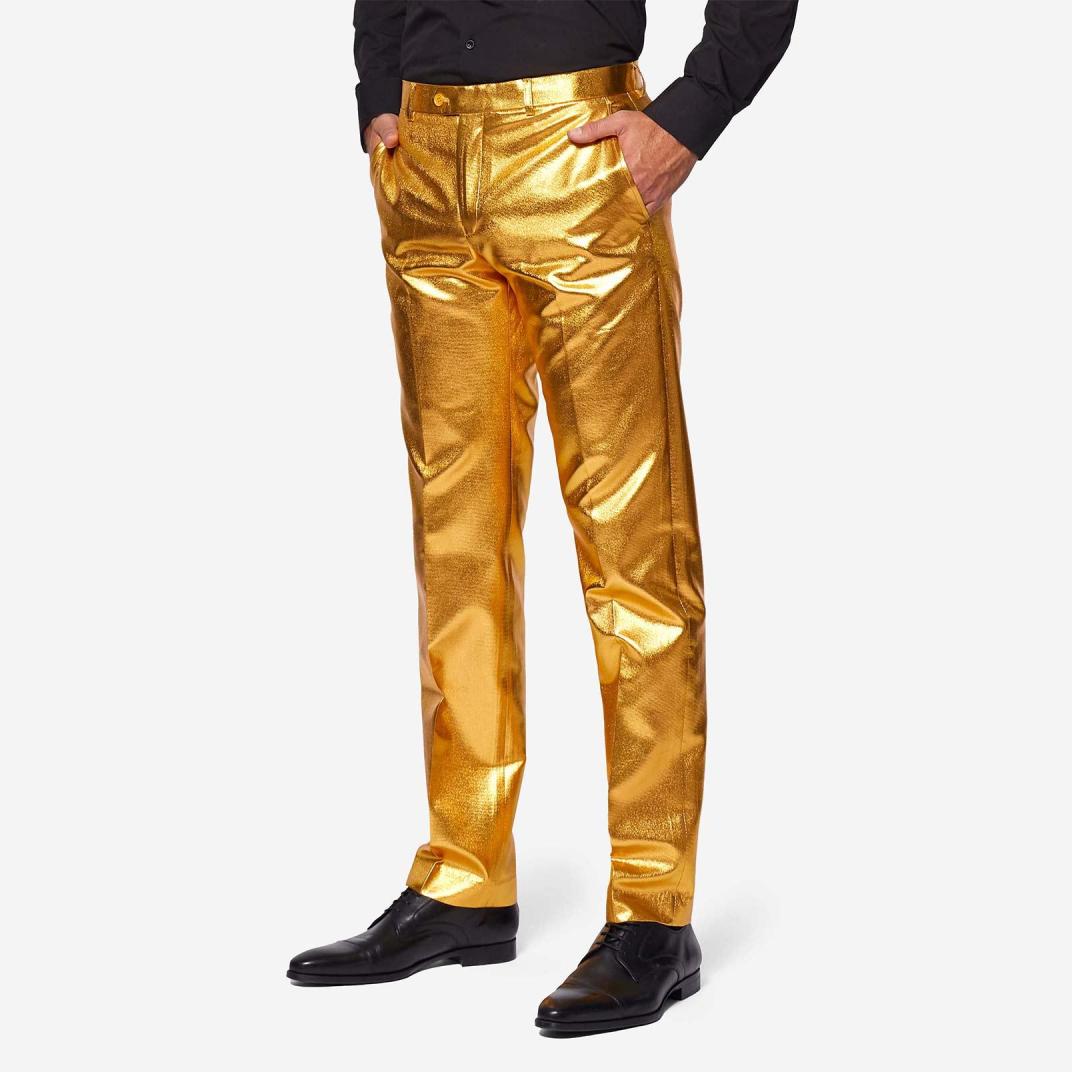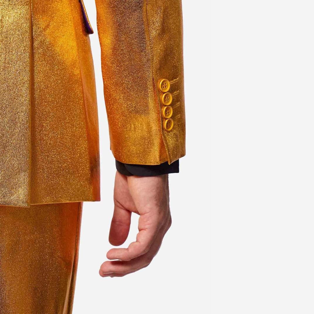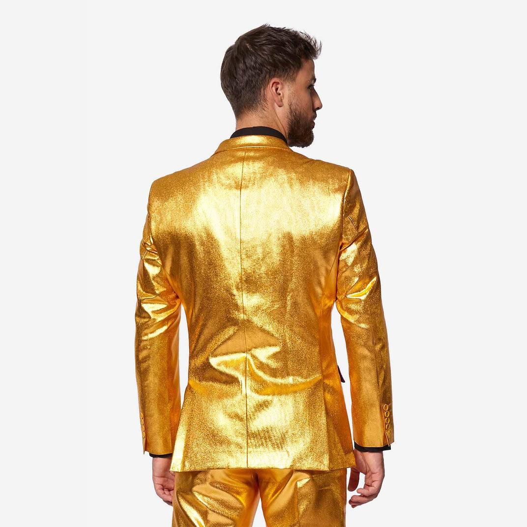 Get ready to rock the party with the Groovy Gold Three Piece Opposuit! This eye-catching suit features a groovy gold design that will make you stand out from the crowd. With a jacket, pants, and tie included, you'll have everything you need to show off your unique style. Suit up and get ready to groove!