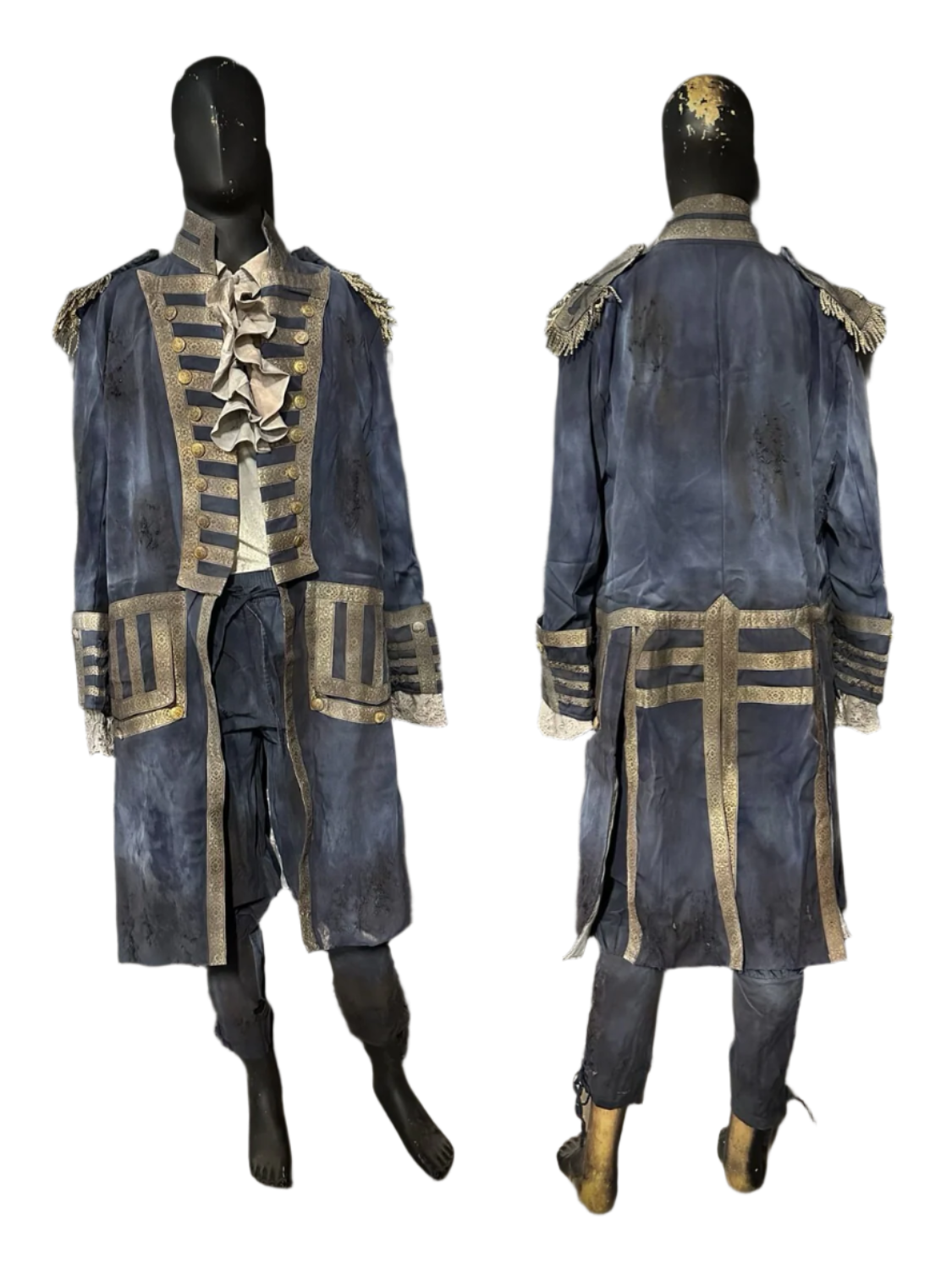 This Haunted Mansion Collection Coachman Adult Costume is perfect for your next murder mystery party. The hand-distressed colonial hussar outfit gives off a creepy vibe, perfect for the occasion. It includes a distressed jacket, pants, and shirt, and is available for rent or purchase in size large.