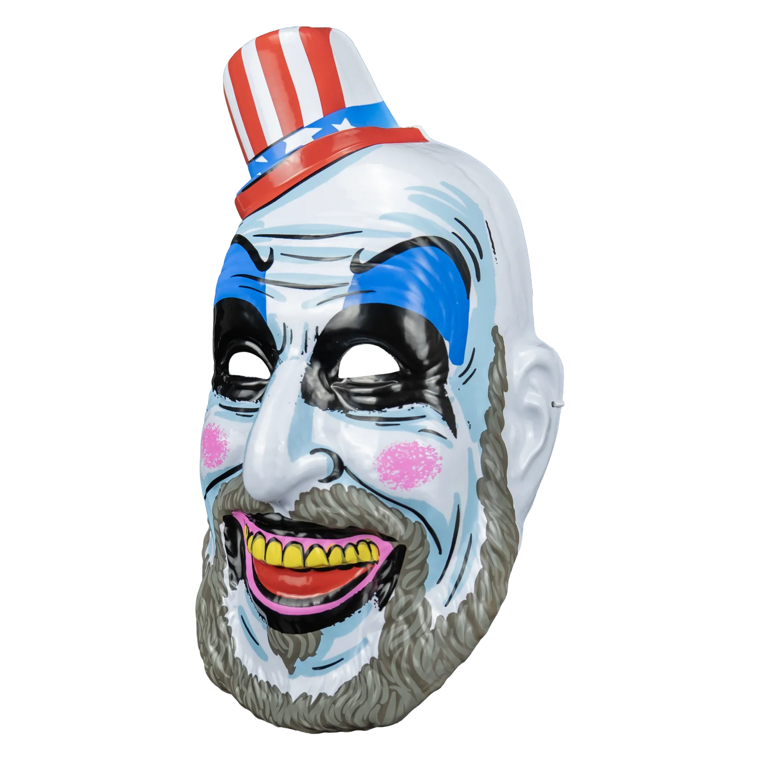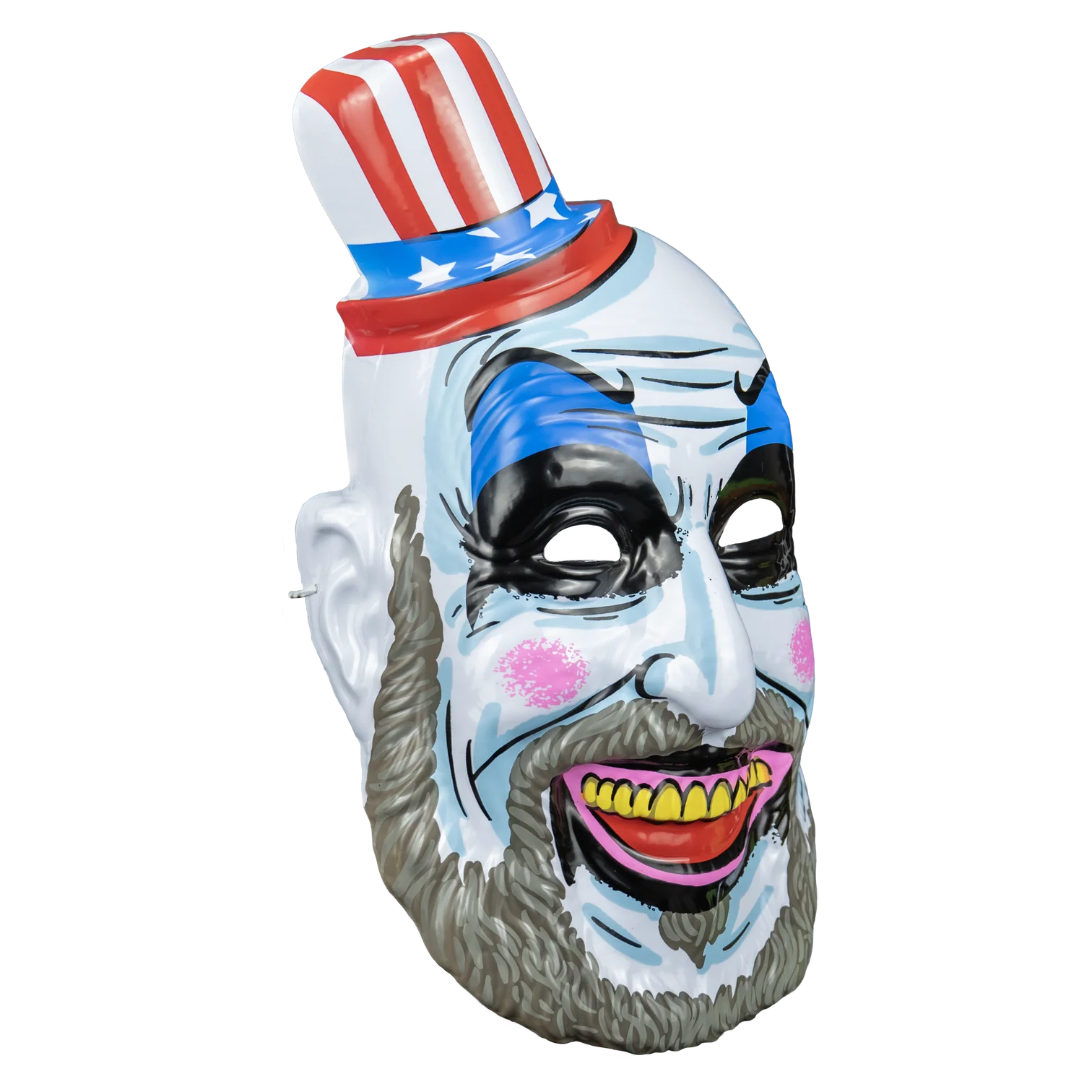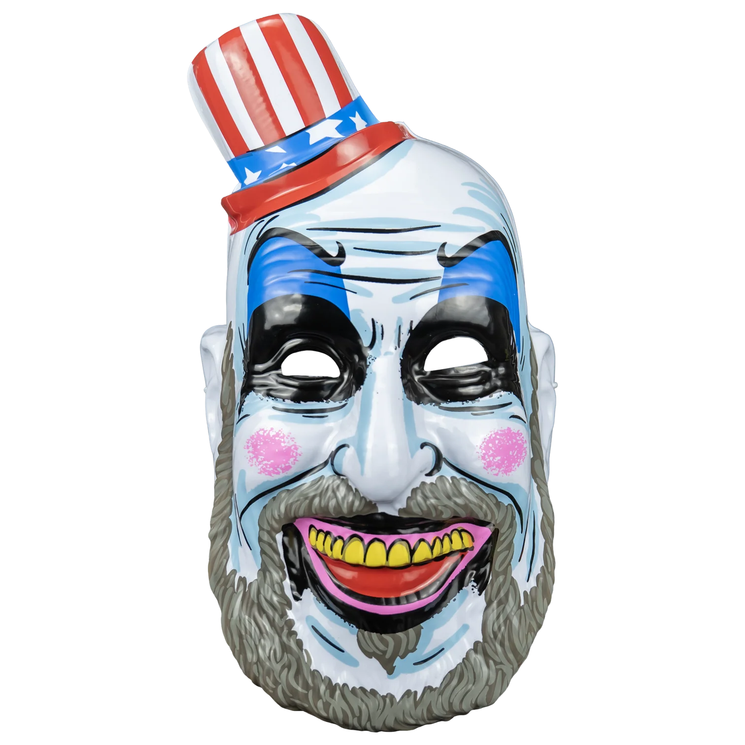 This lightweight vacuform House of 1000 Corpses Captain Spaulding Retro Mask showcases a screen-printed illustrated design with bold colors and stylized details that capture Spaulding’s facepaint, grin, and chaos in retro fashion. Perfect for collectors, display, or bringing nostalgic Halloween vibes to your next costume.