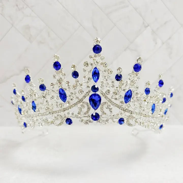 Reign supreme with this stunning Ice Queen Silver Tiara, adorned with brilliant royal navy blue rhinestones that catch the light with every movement. Perfect for costume events, themed parties, or anyone who loves regal elegance, this piece delivers instant sophistication and glamour. The polished silver finish pairs beautifully with the deep blue stones, creating a striking contrast that commands attention. Whether you're channeling your inner royalty or completing a show-stopping look, this tiara is your ticket to unforgettable style.
