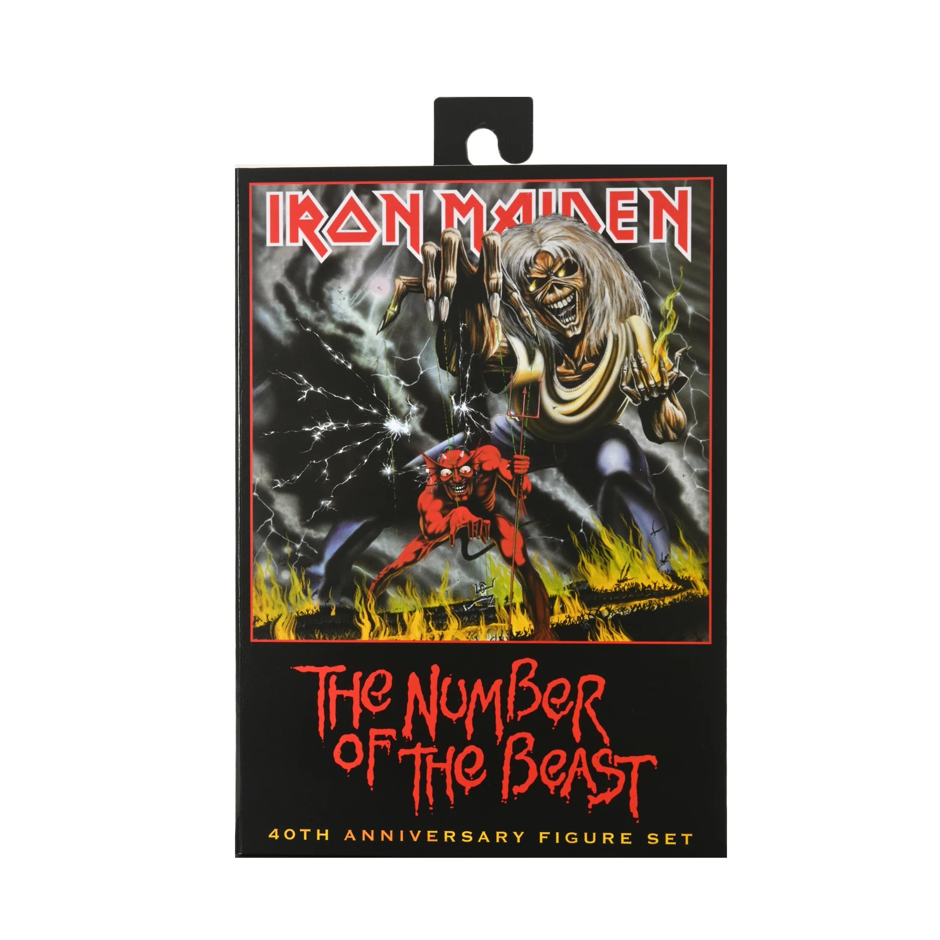 Unleash heavy metal hellfire with this wickedly detailed 7" action figure set featuring Eddie, Iron Maiden’s infamous undead mascot, straight from the fiery cover of The Number of the Beast. Sculpted in demonic detail and dripping with '80s album art attitude, this diorama set immortalizes Derek Riggs’ iconic artwork from both the 1982 album and single. Eddie comes posed like a puppet master of damnation, controlling a horned devil figure—who’s also controlling a mini Eddie puppet. That’s three layers of infernal puppet inception for the price of one!