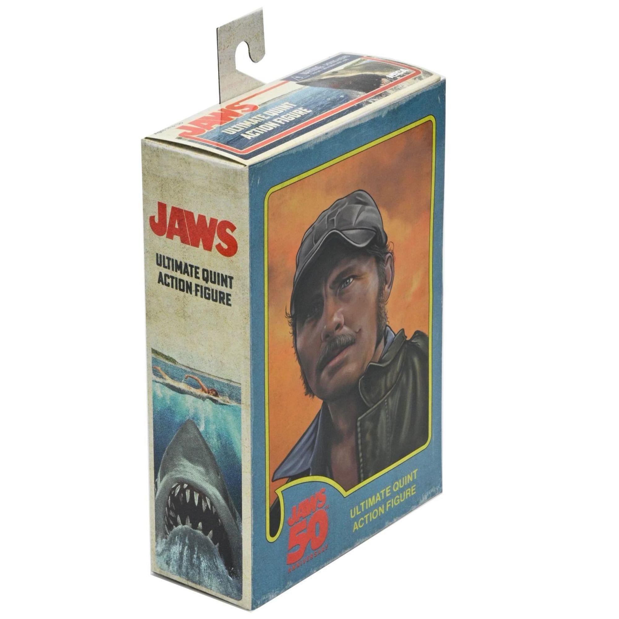 You’re gonna need a bigger shelf. NECA celebrates 50 years of Jaws with this Ultimate action figure of shark-hunter and beer-crusher Sam Quint, the grizzled sea captain who gave Spielberg’s 1975 masterpiece one of its sharpest edges. A no-nonsense man of the ocean with a machete in hand and a vendetta in his soul, this Quint figure captures every detail—from his rugged green jacket to his hard-earned sideburns.